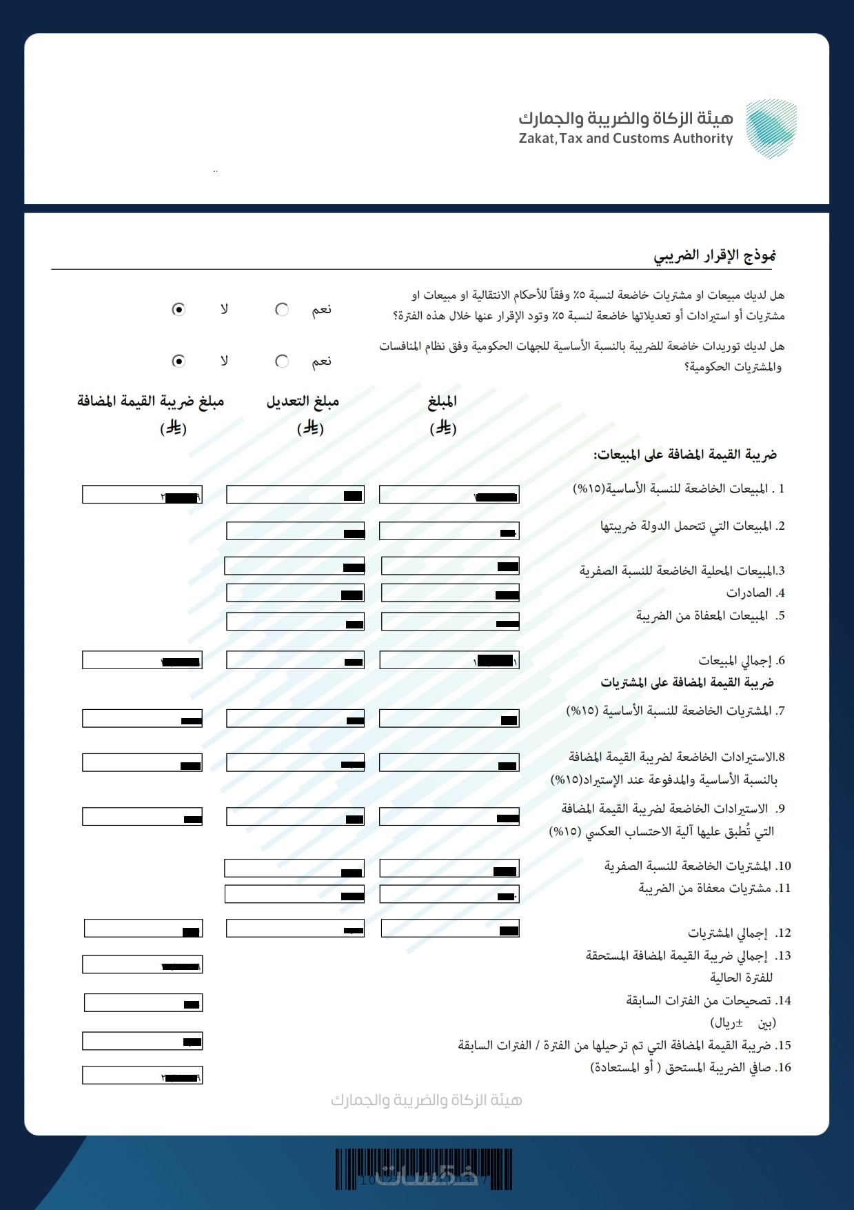 إقرار ضريبي، ضريبة القيمة المضافة، الهيئة العامة للزكاة