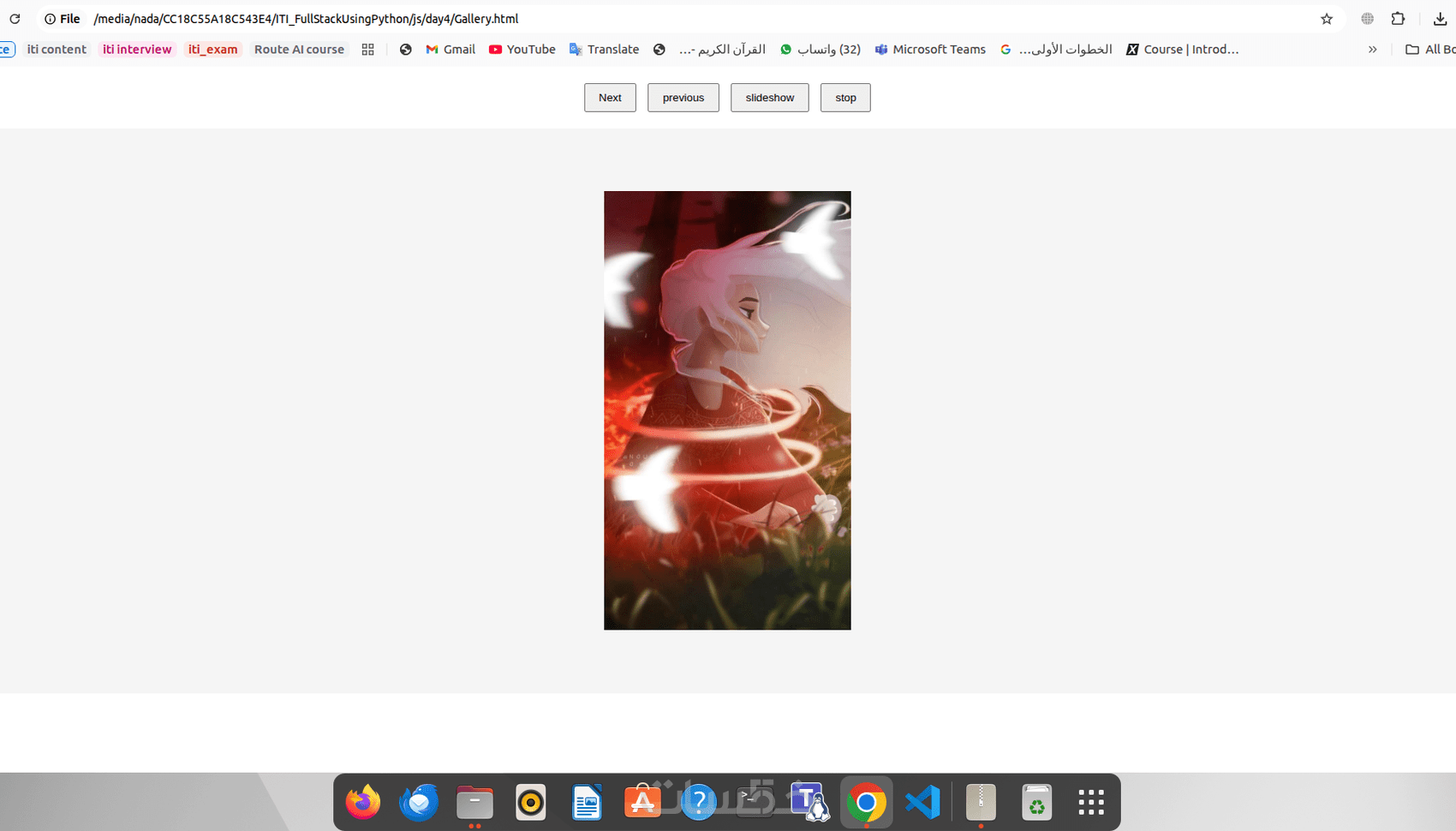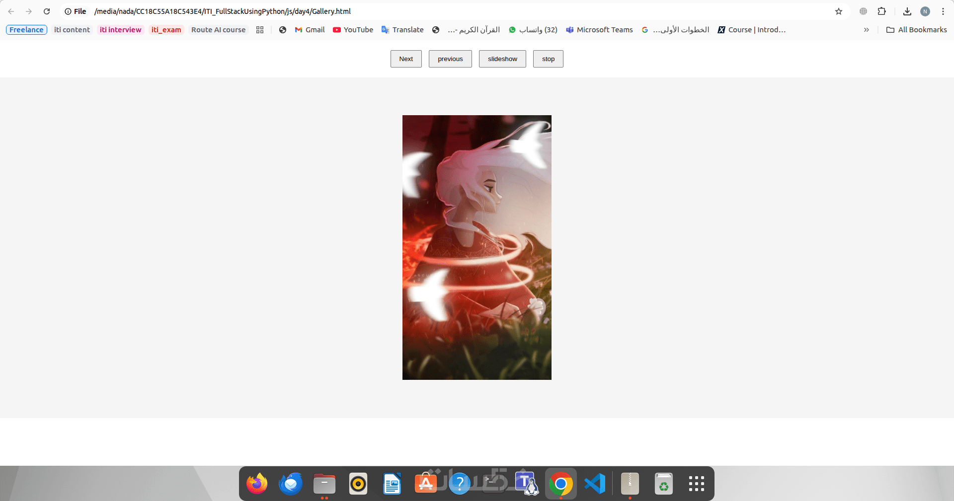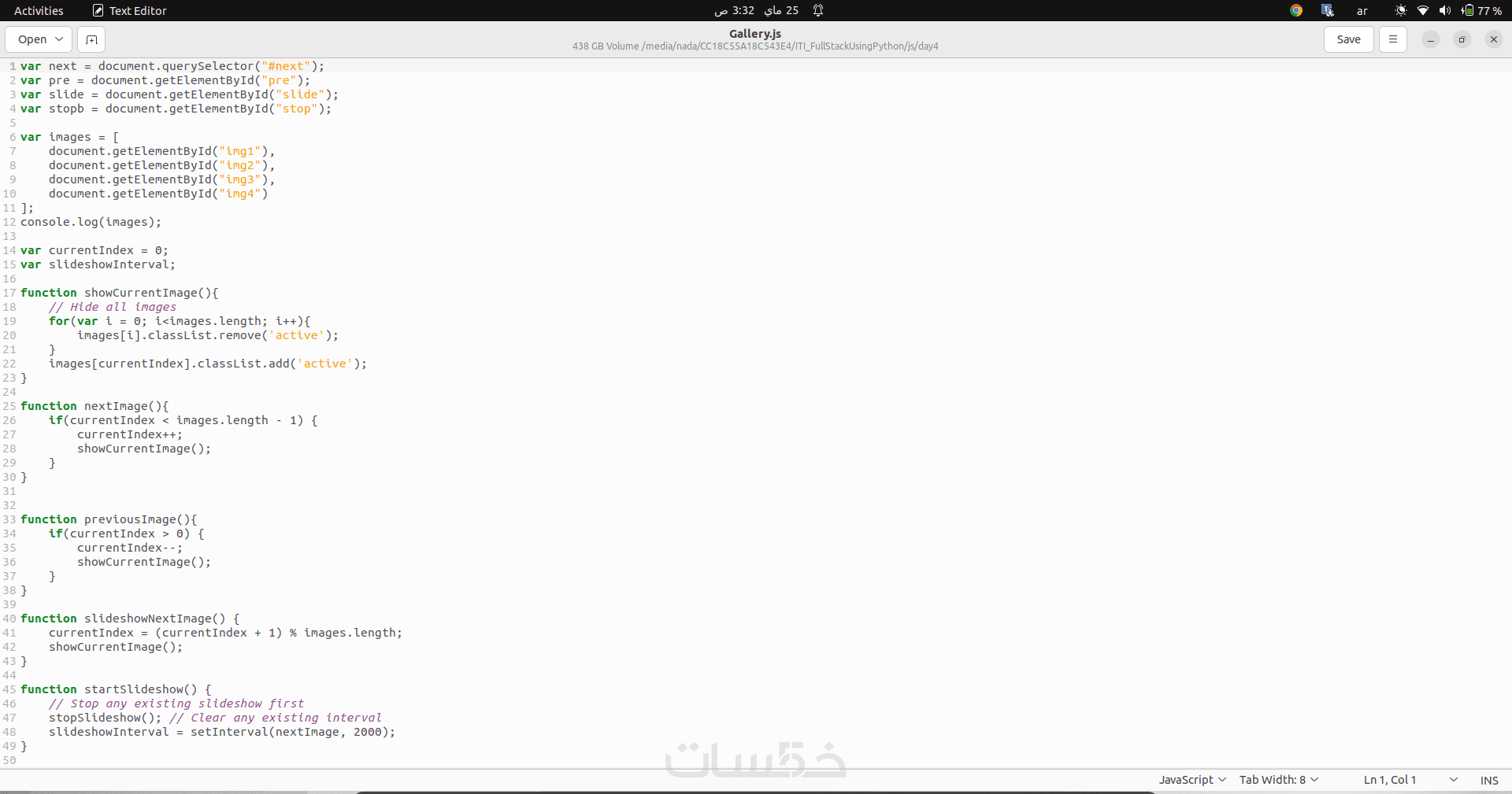 عرض تقديمي للصور من خلال أزرار (التالي، السابق، تشغيل، قف)