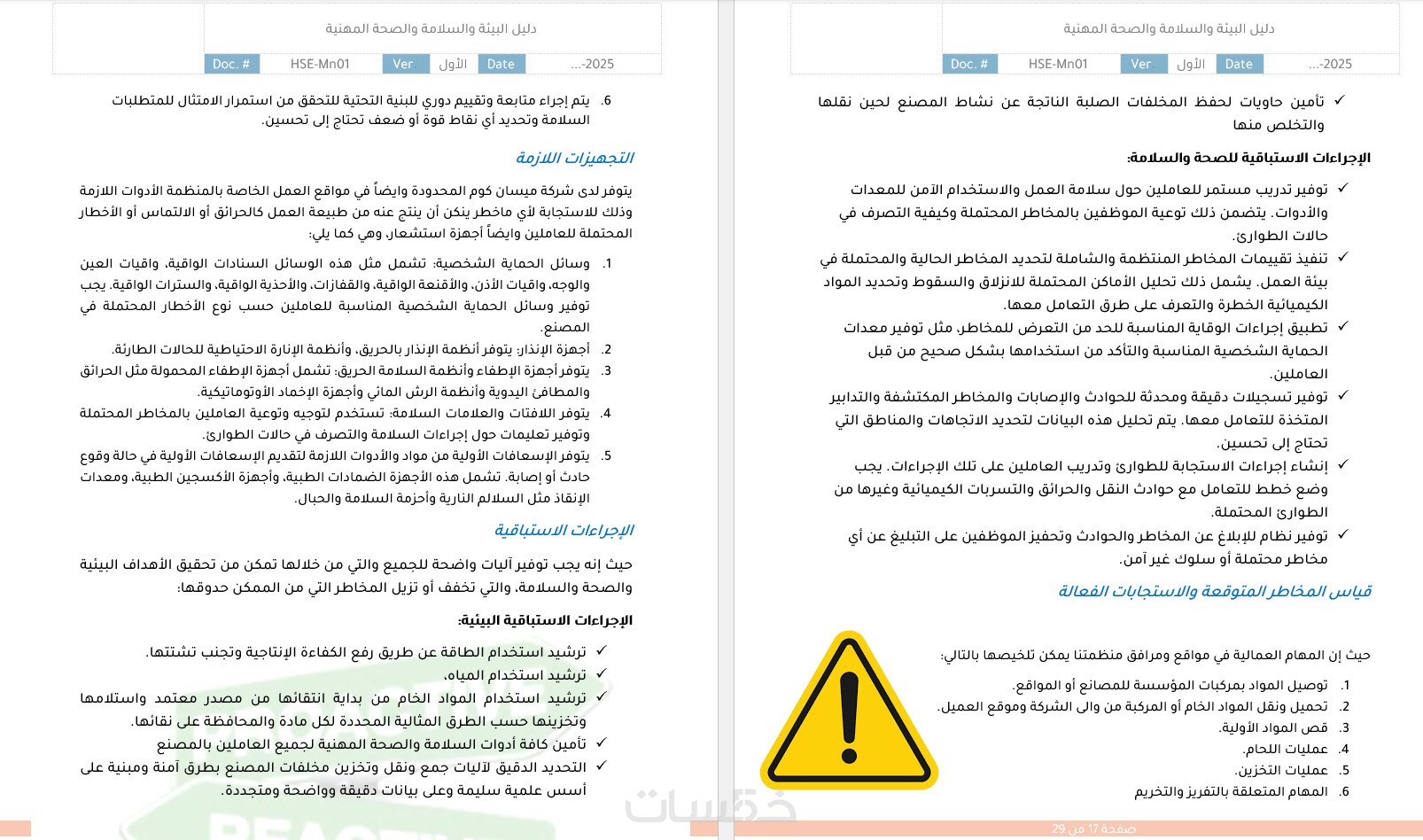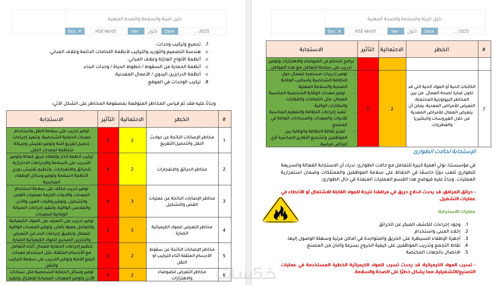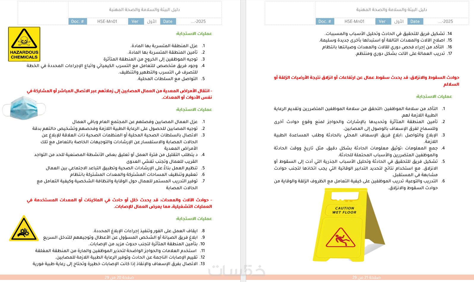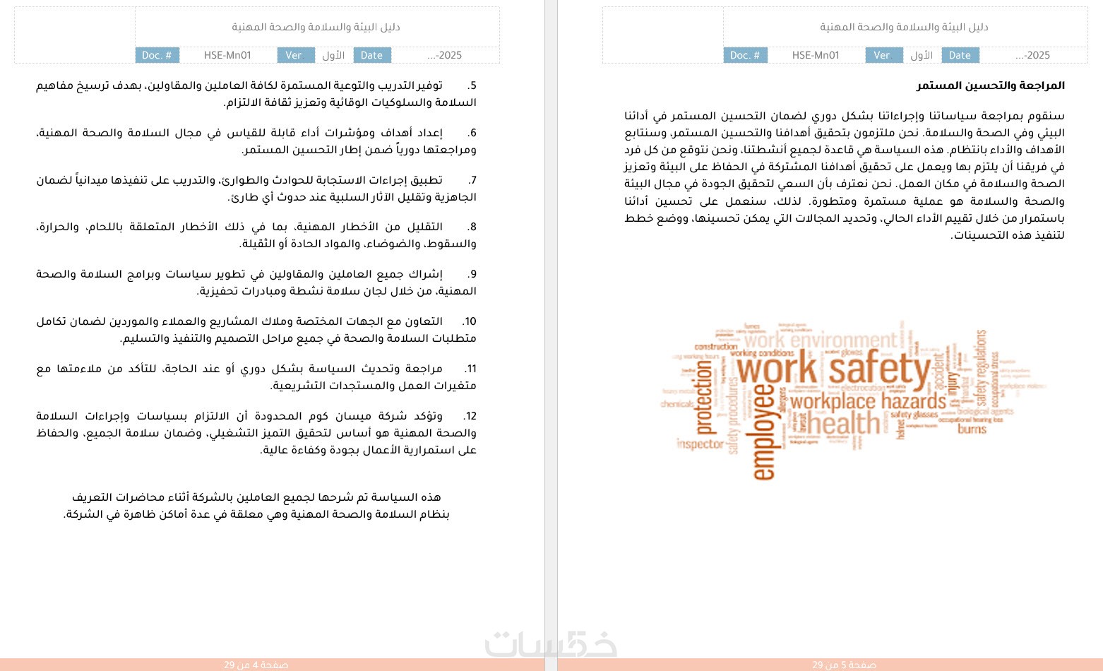اعداد دليل كامل عن السلامة والصحة والبيئة (HSE)