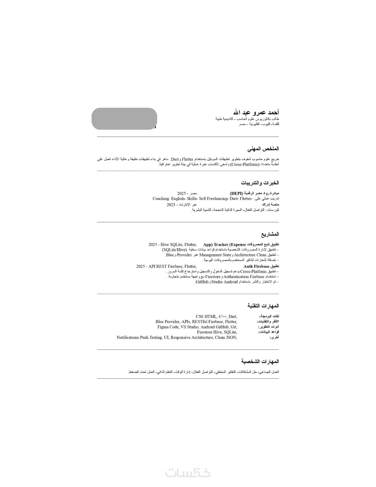تصميم السيرة الذاتية بالعربية الانجليزية