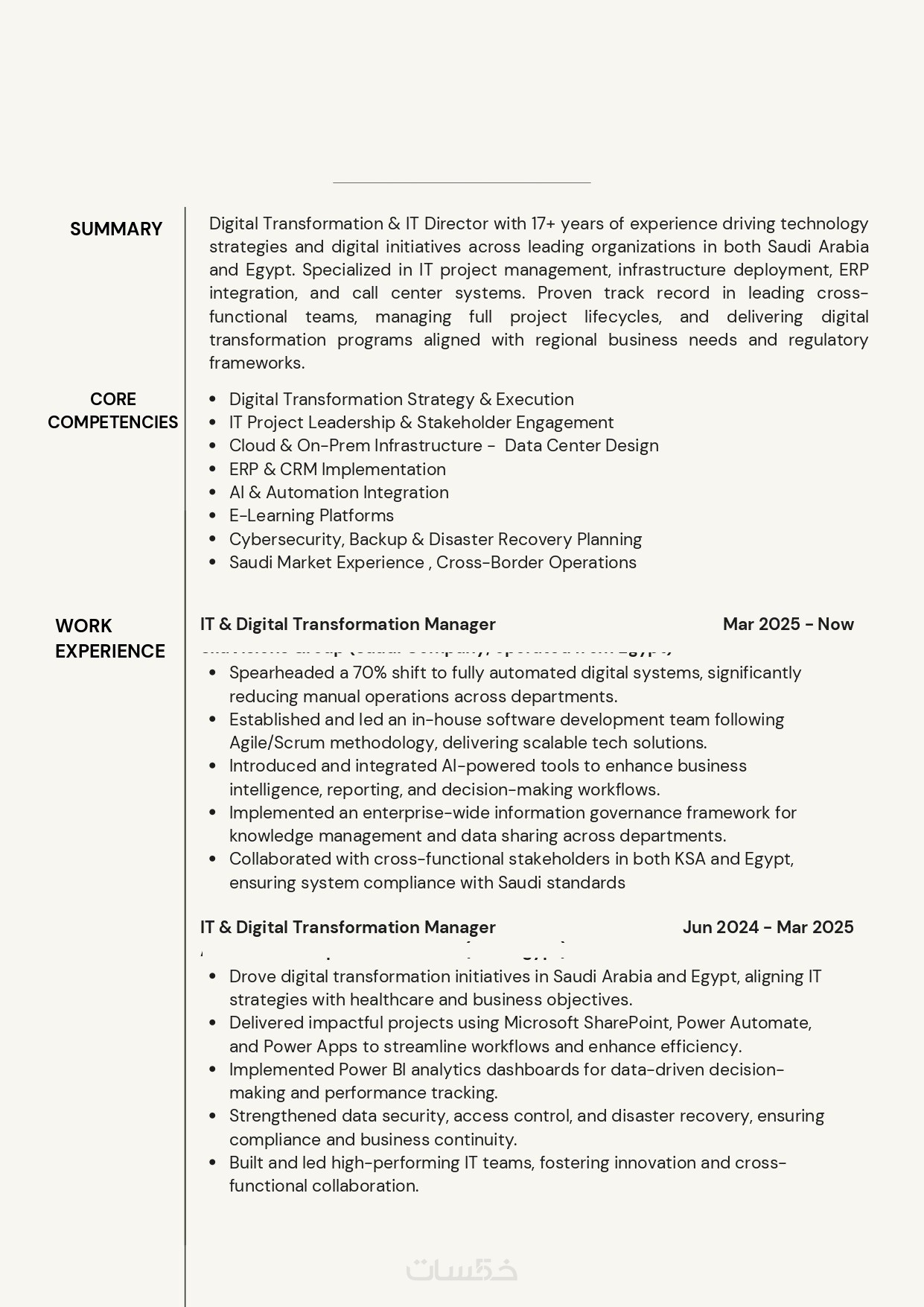 تصميم السيرة ذاتية CV باللغتين العربية والانجليزية