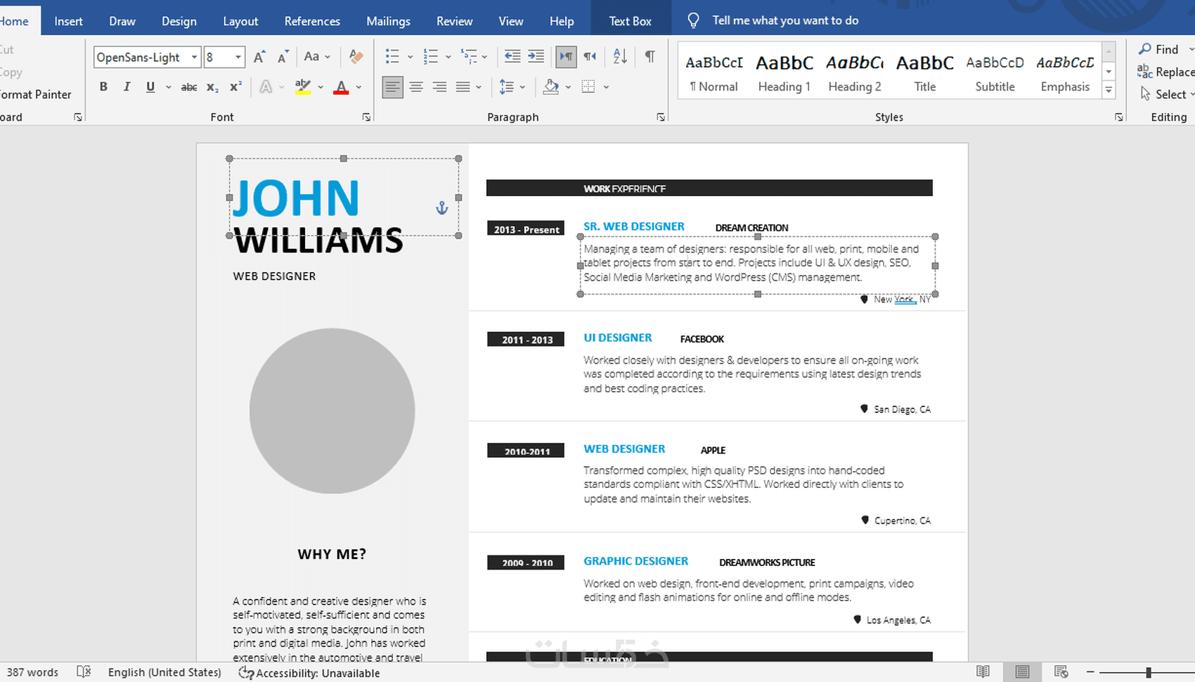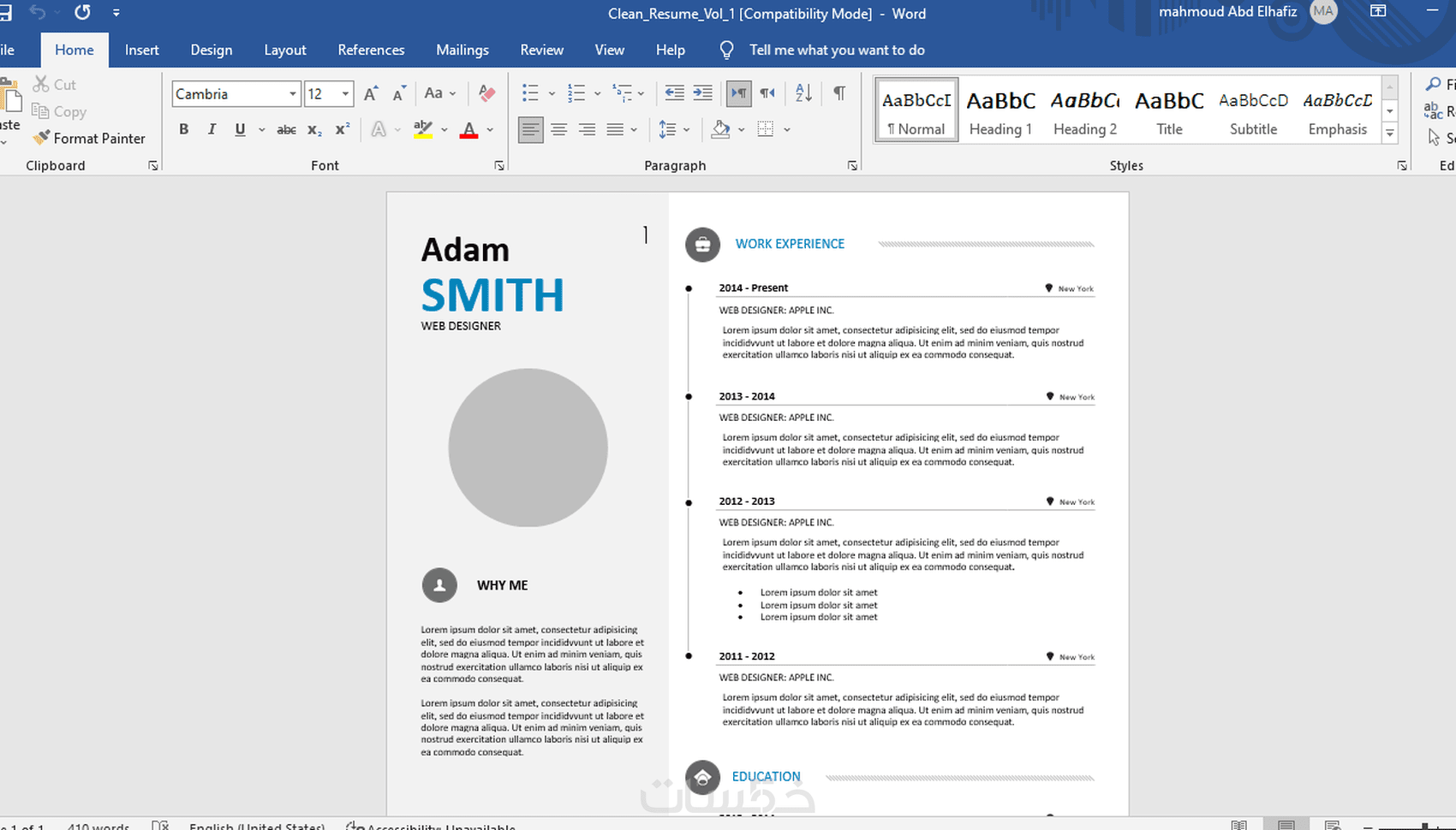 تصميم السيرة الذاتي CV بشكل احترافي باستخدام برنامج MS word صفحة واحدة