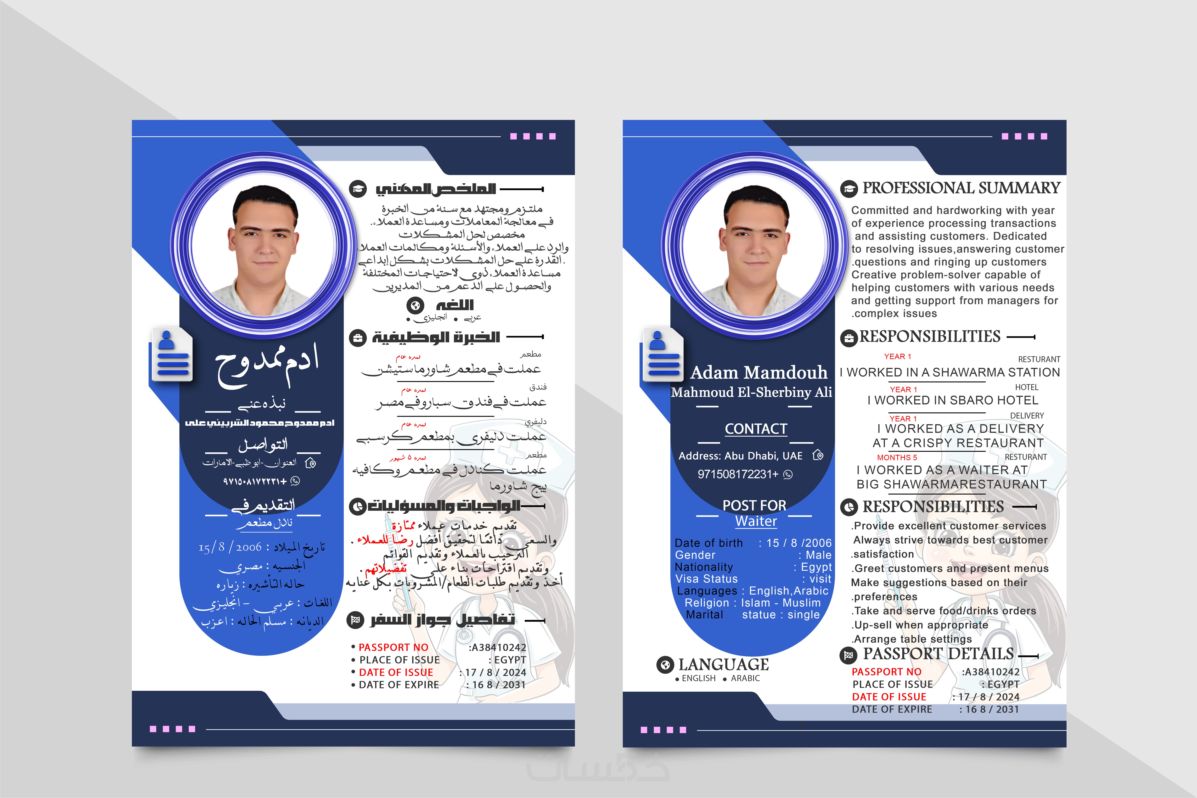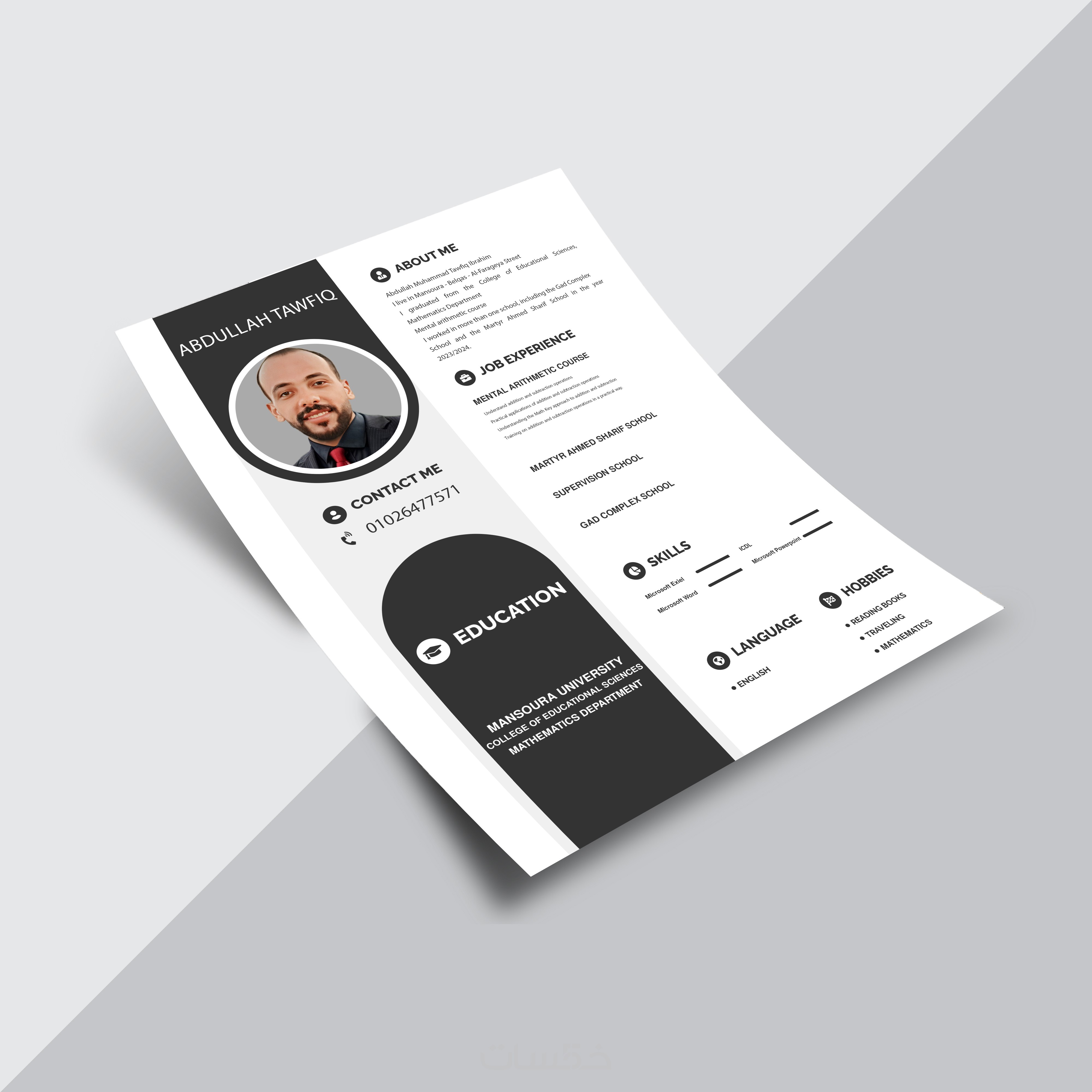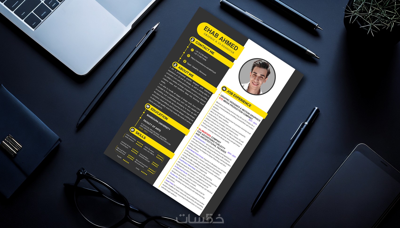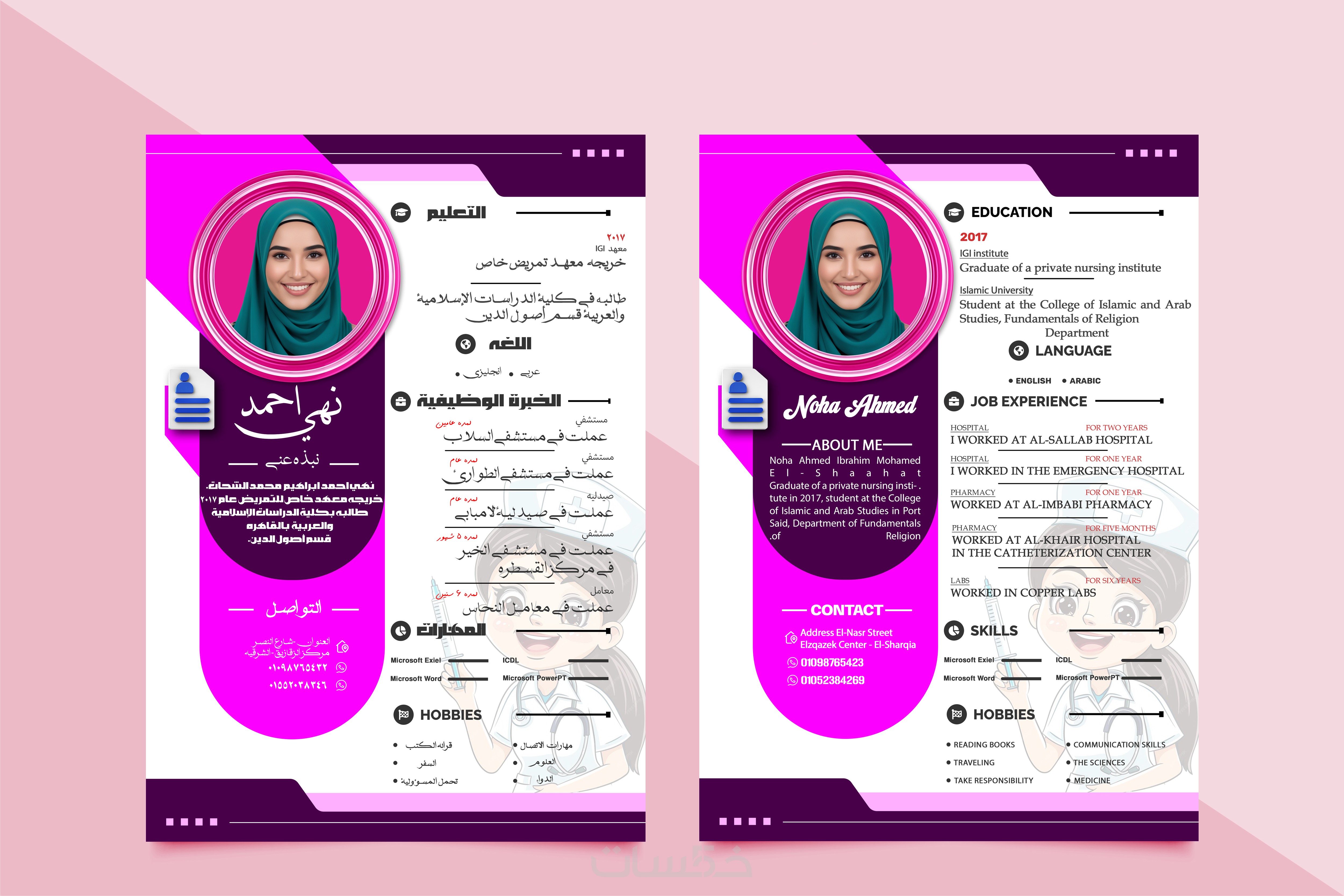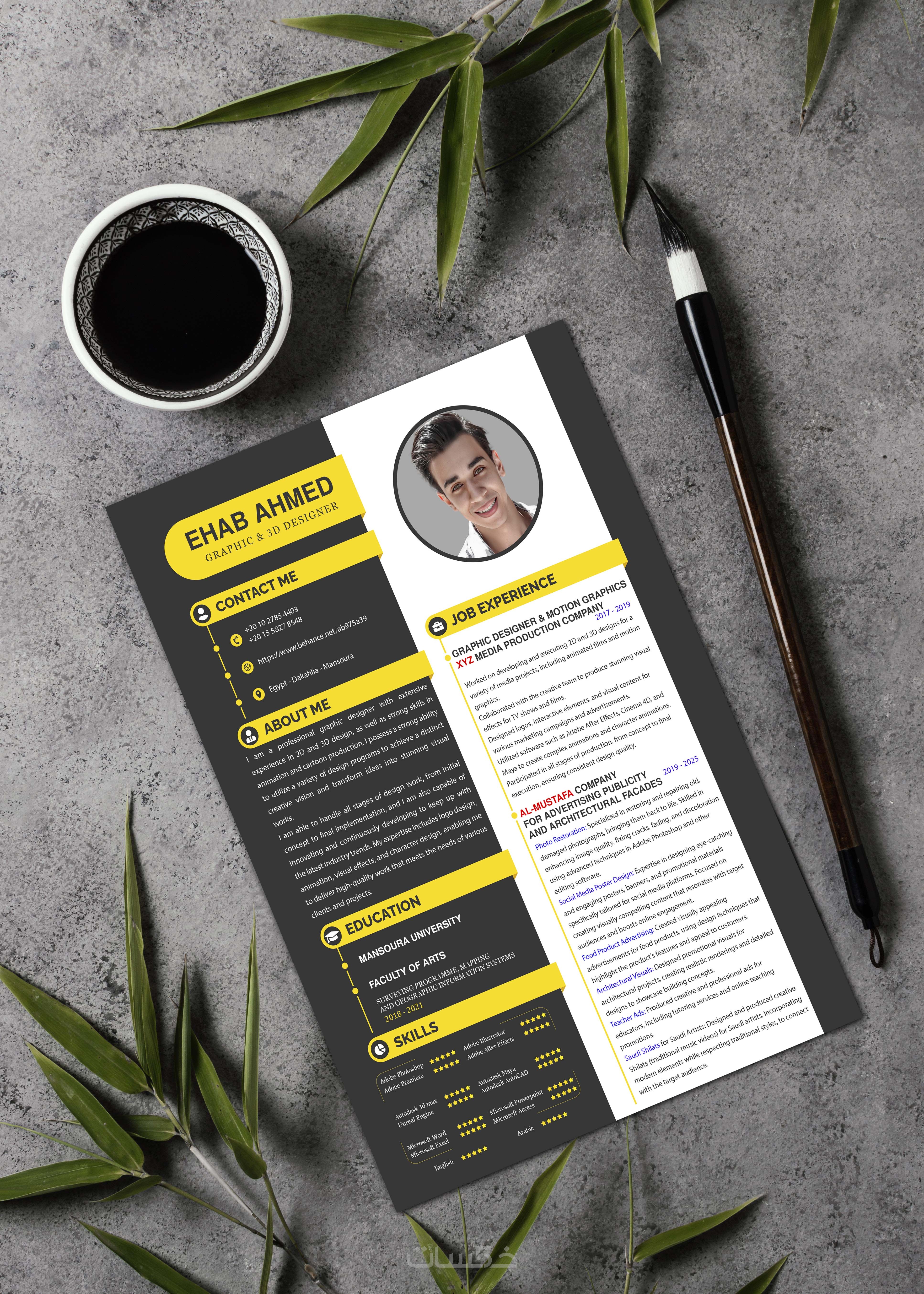 تصميم سيرة ذاتيه باللغتين العربية والانجليزيه