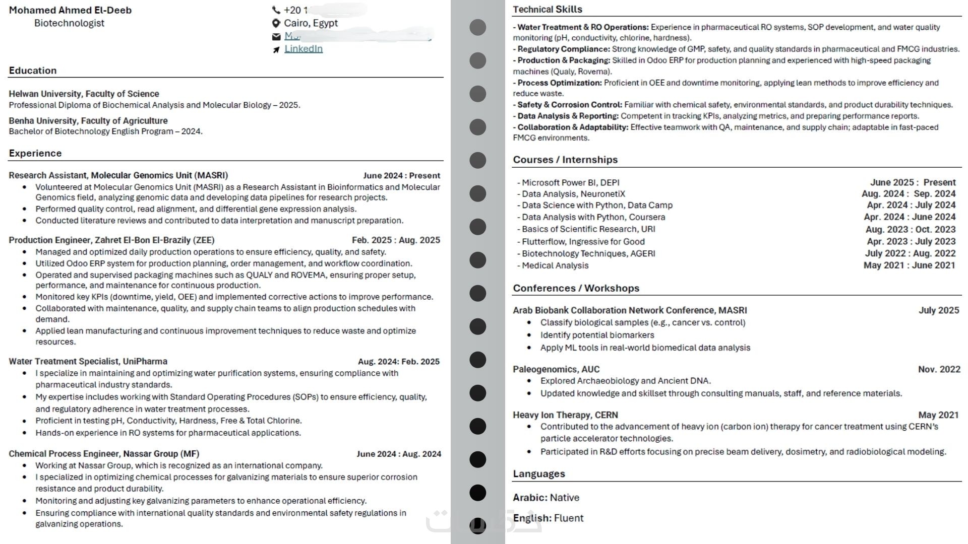 سيرة ذاتية طبقا للمقاييس العالمية ومواجهة برامج ال (ATC)
