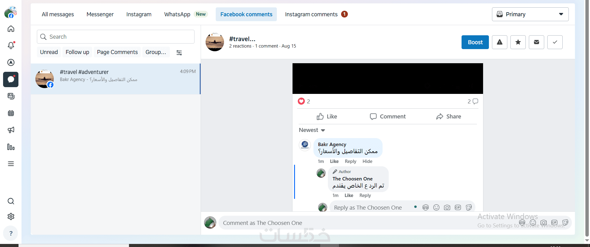 إدارة صفحات الفيسبوك والرد علي العملاء
