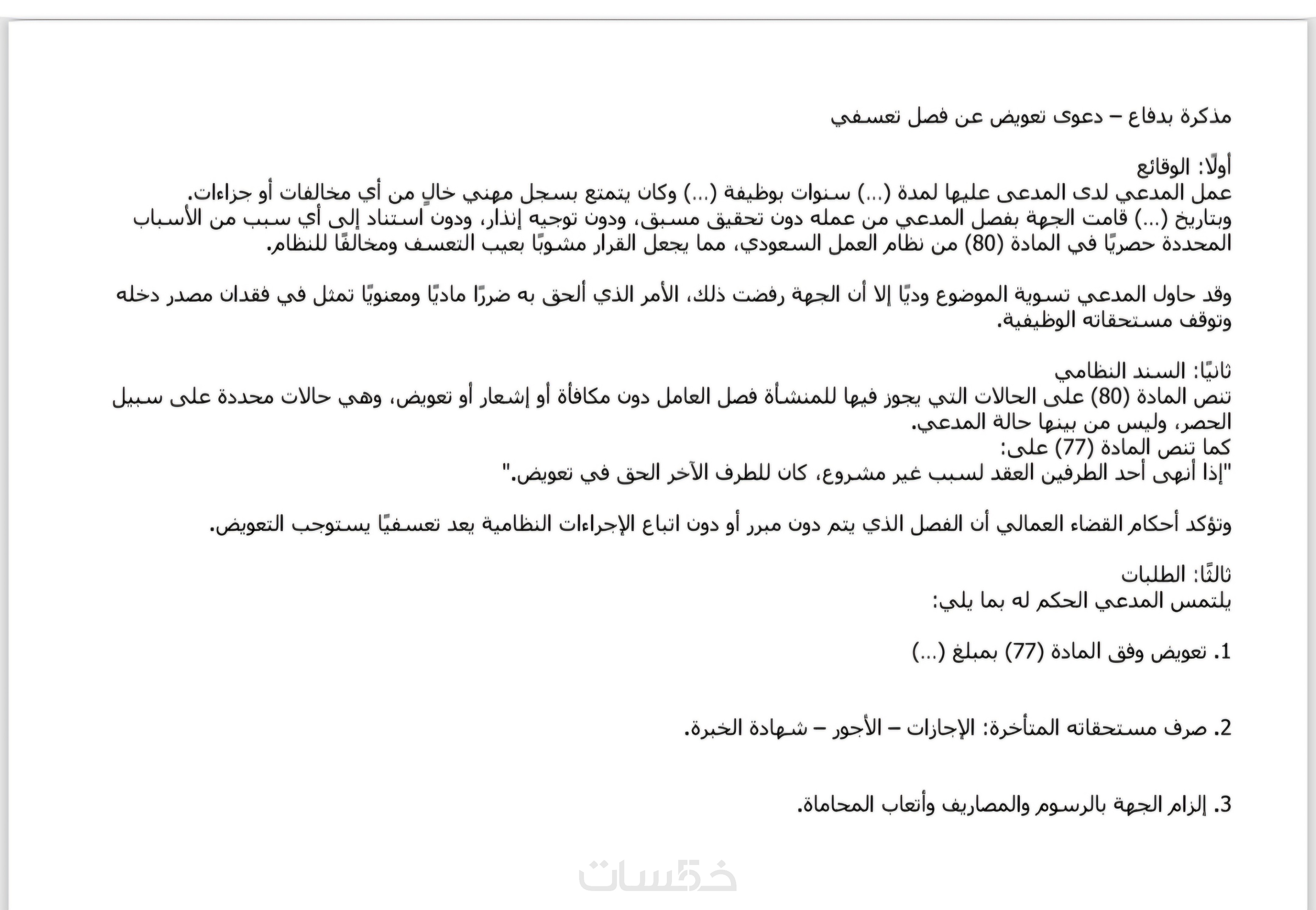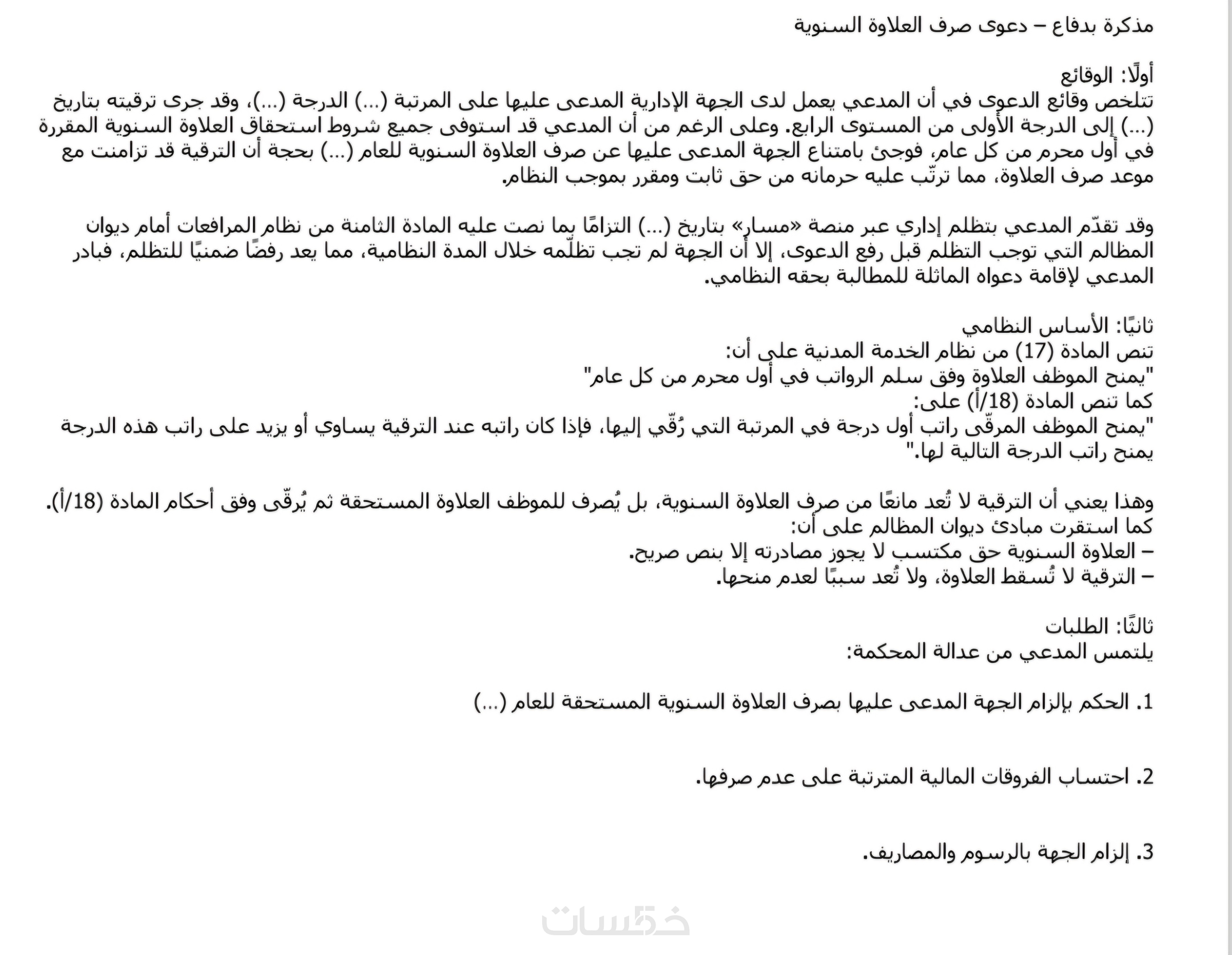 خدمة مذكرات وصحف دعاوى صياغة مذكرة دفاع أو صحيفة دعوى
