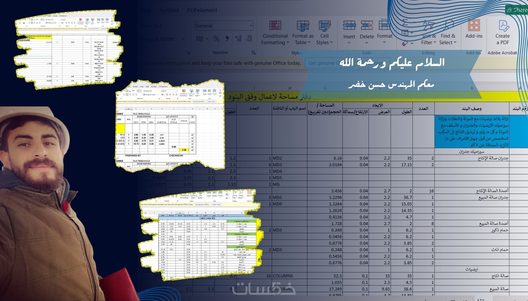 حساب الكميات الانشائية و المعمارية و تنظيمها على ملف excel