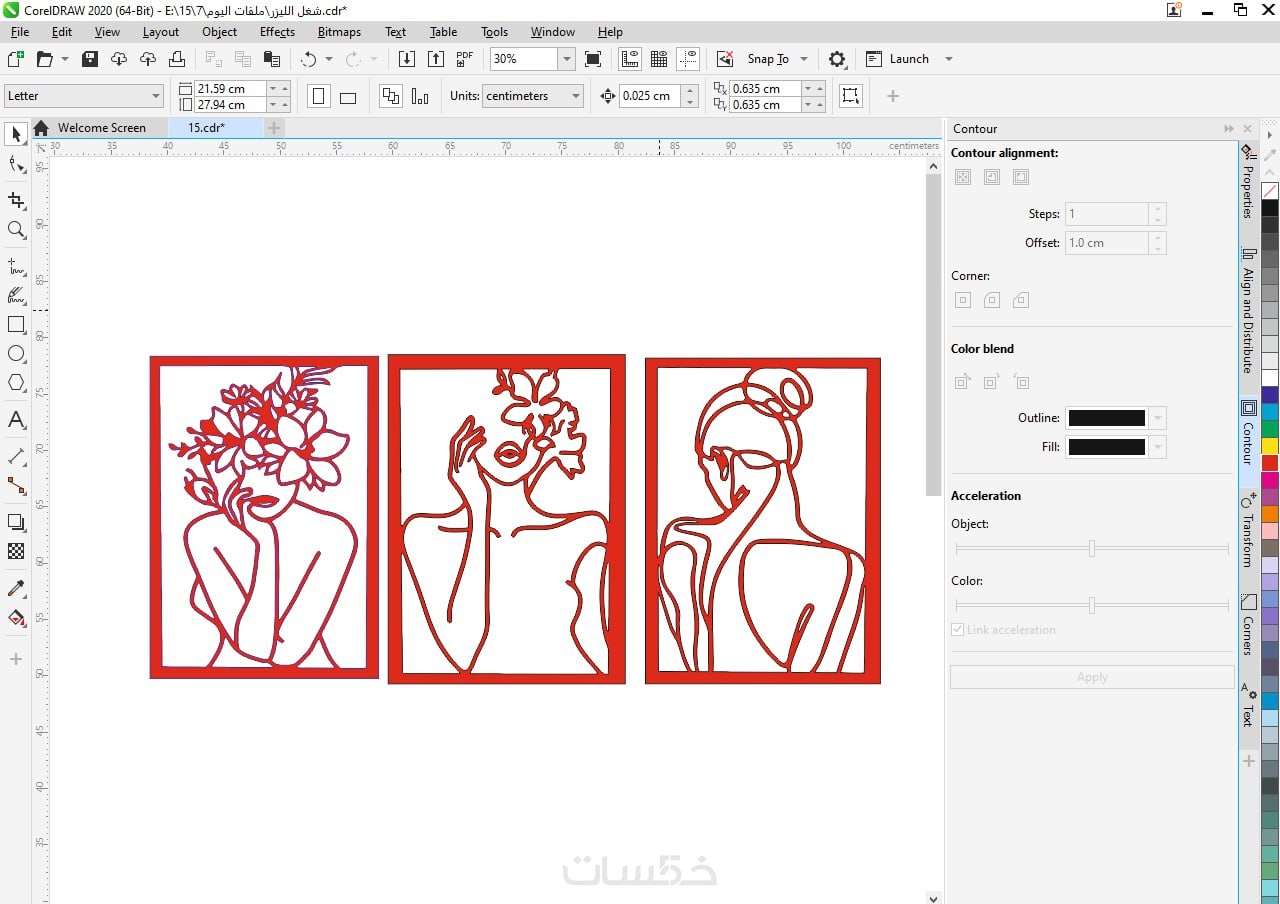 تصاميم 2d للقص على مكنات الليزر و CNC ببرنامج Corel Drow