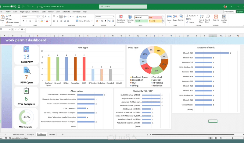 اكسل داشبورد Excel Dashboard