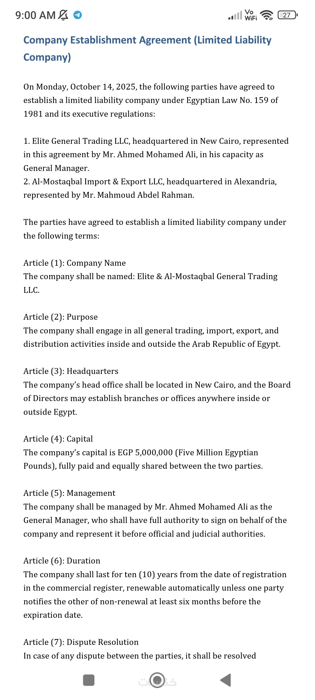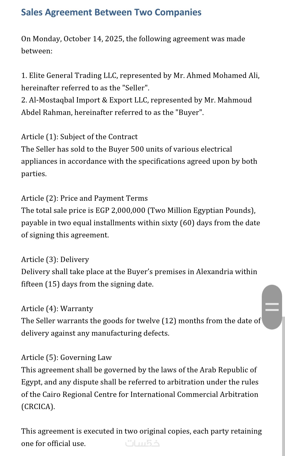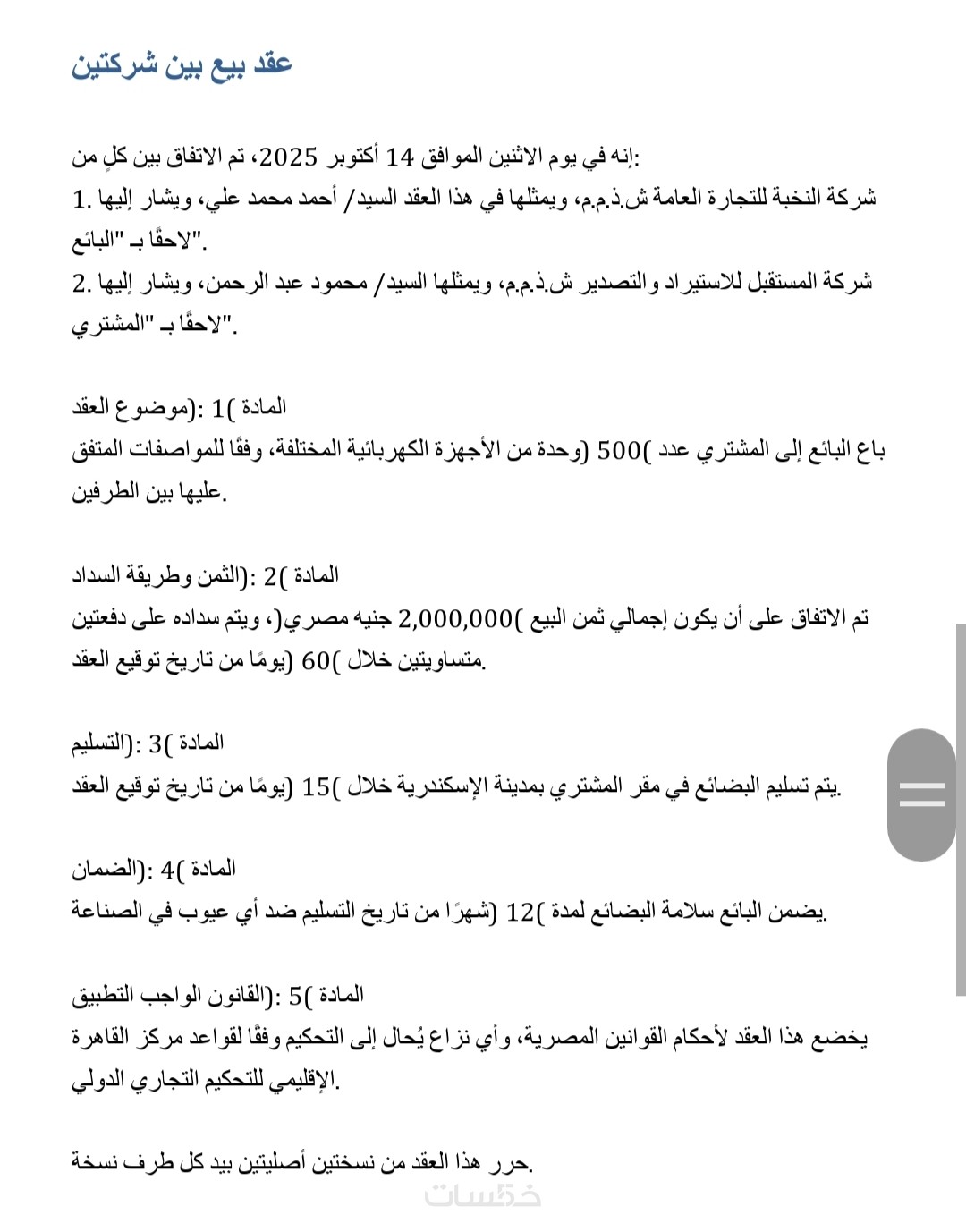استشارات قانونية صياغة العقود وفقا للقانون السعودى والمصرى
