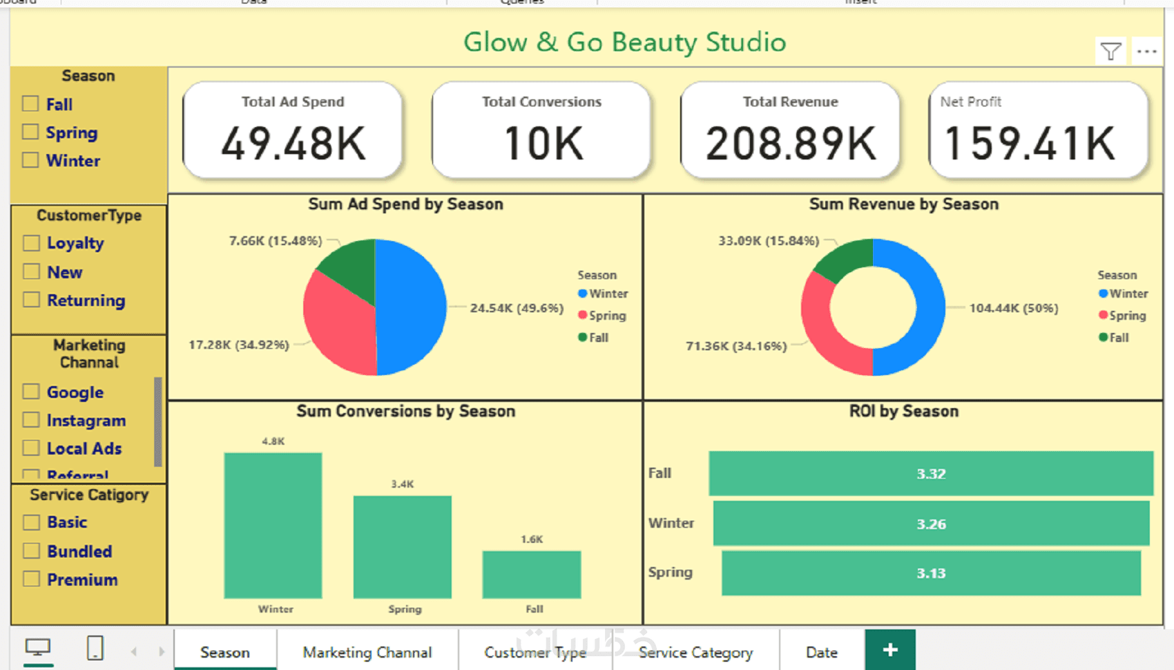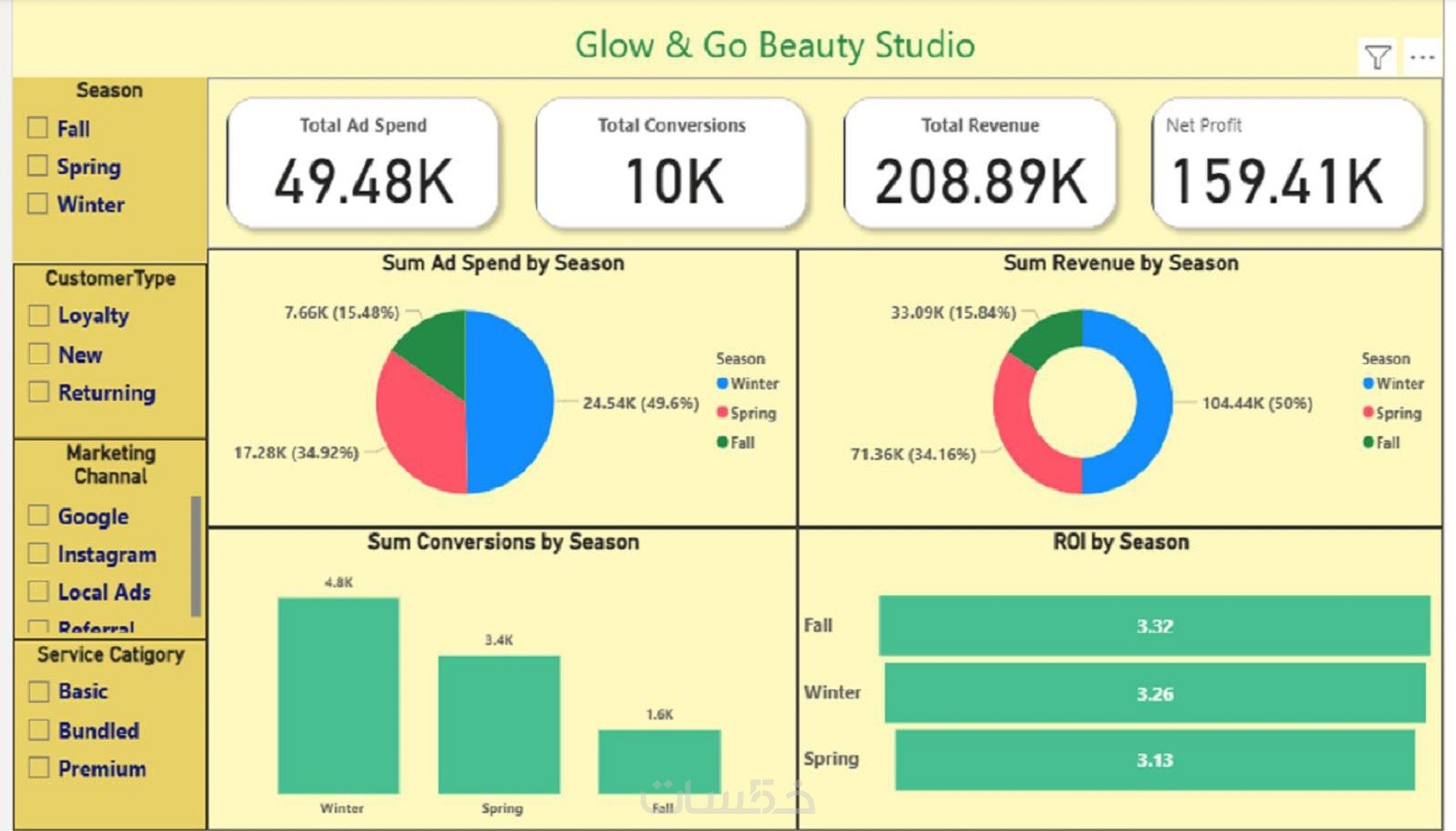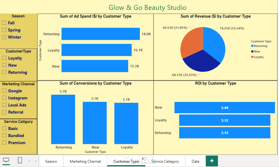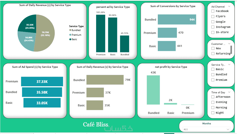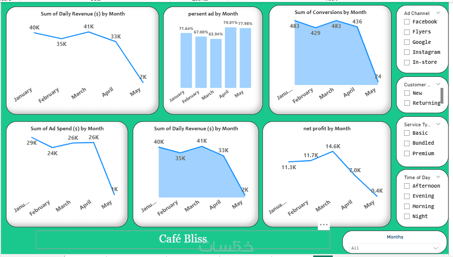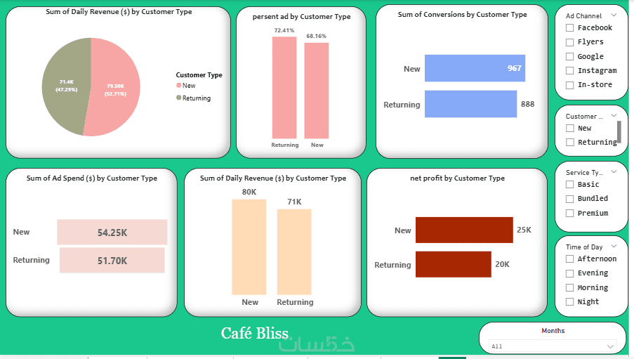 power bi ,تحليل بيانات شامل للأداء والمبيعات والعملاء