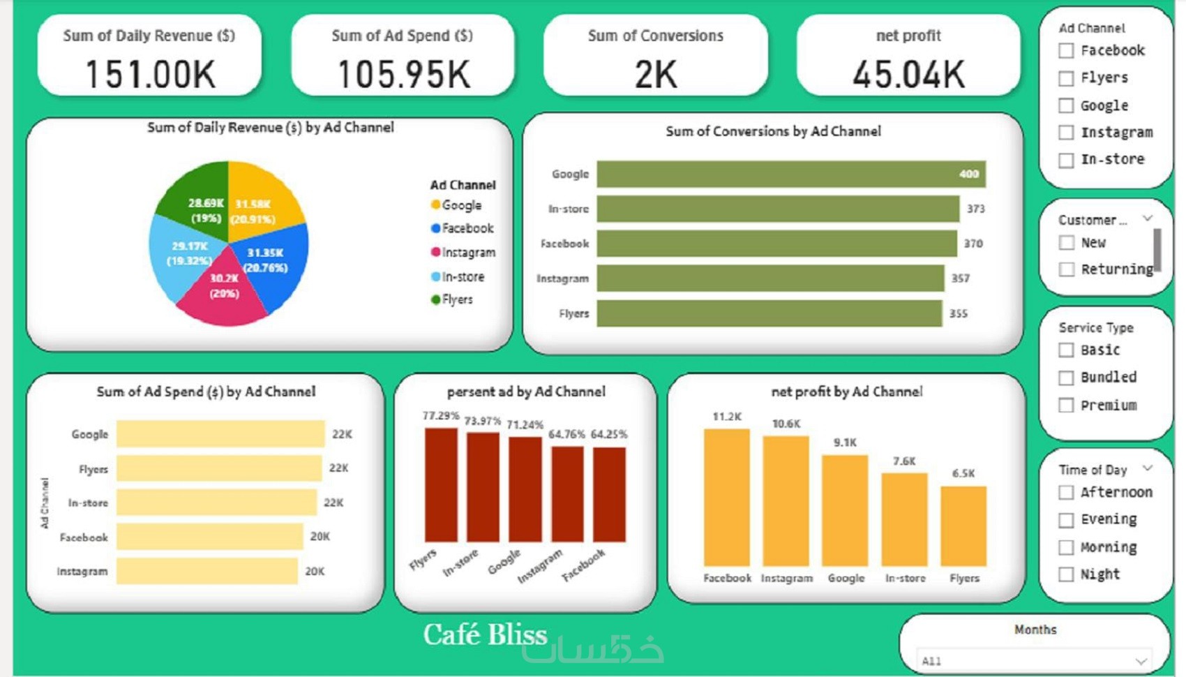 dashboard تحليل بيانات شامل للأداء والمبيعات والعملاء والمنصات