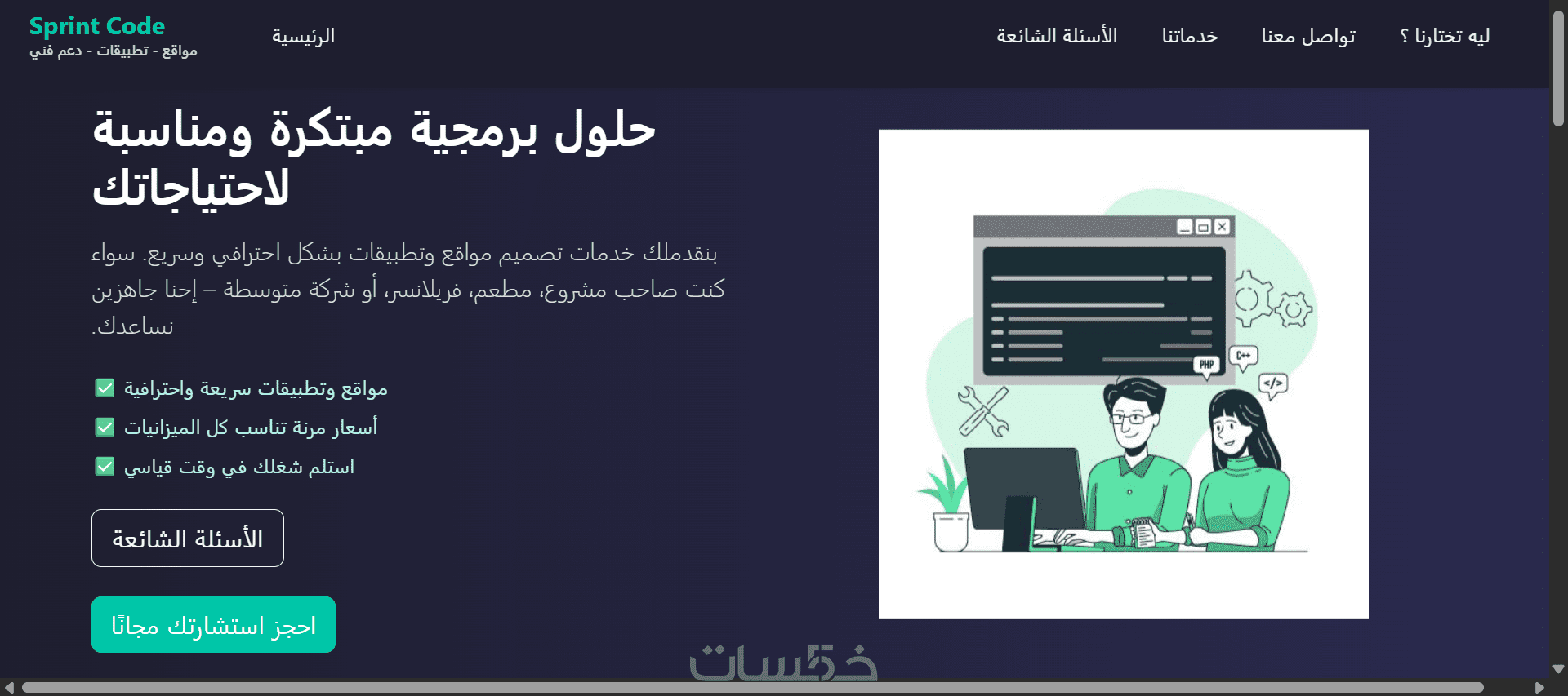 تصميم او برمجة الواجهة الأمامية لموقع هبوط