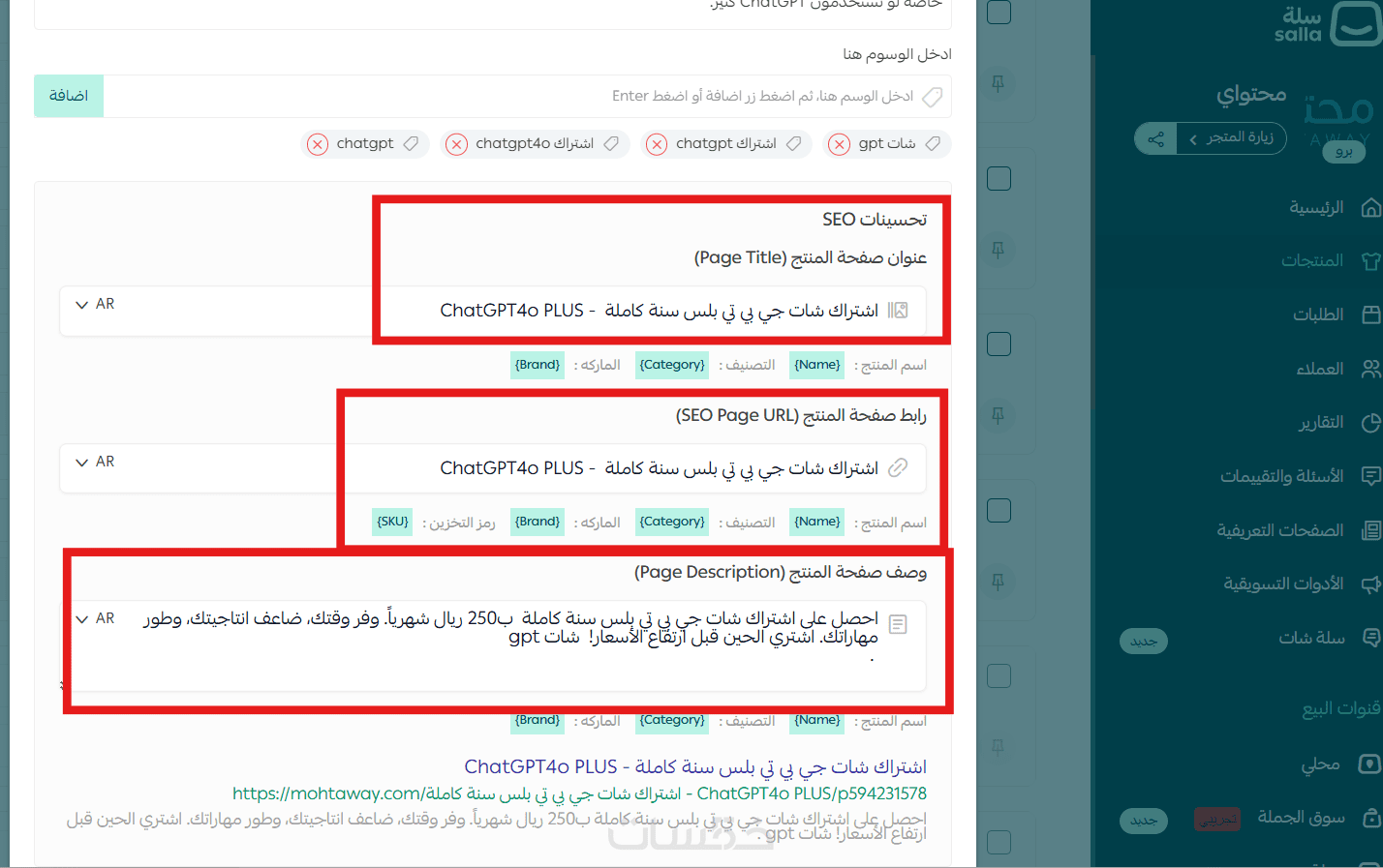 تحسين seo الداخلي متاجر سلة وصف منتجات