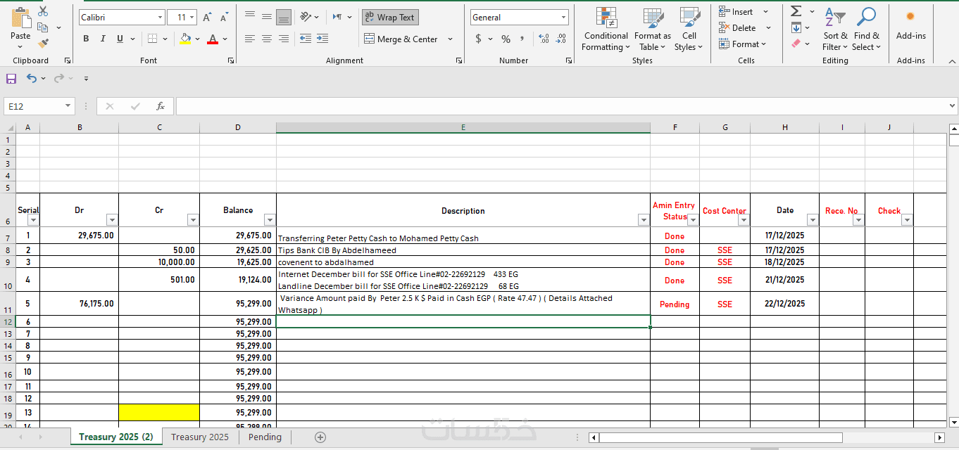 عمل شيت عهد لامساك الايرادات والمصروفات