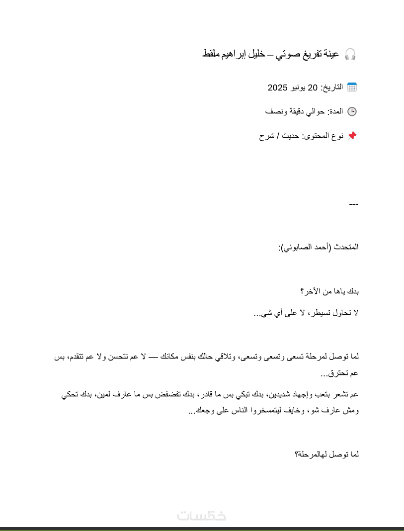 تفريغ صوتي ومرئي احترافي دقه 100 % بالفصحى والعامية