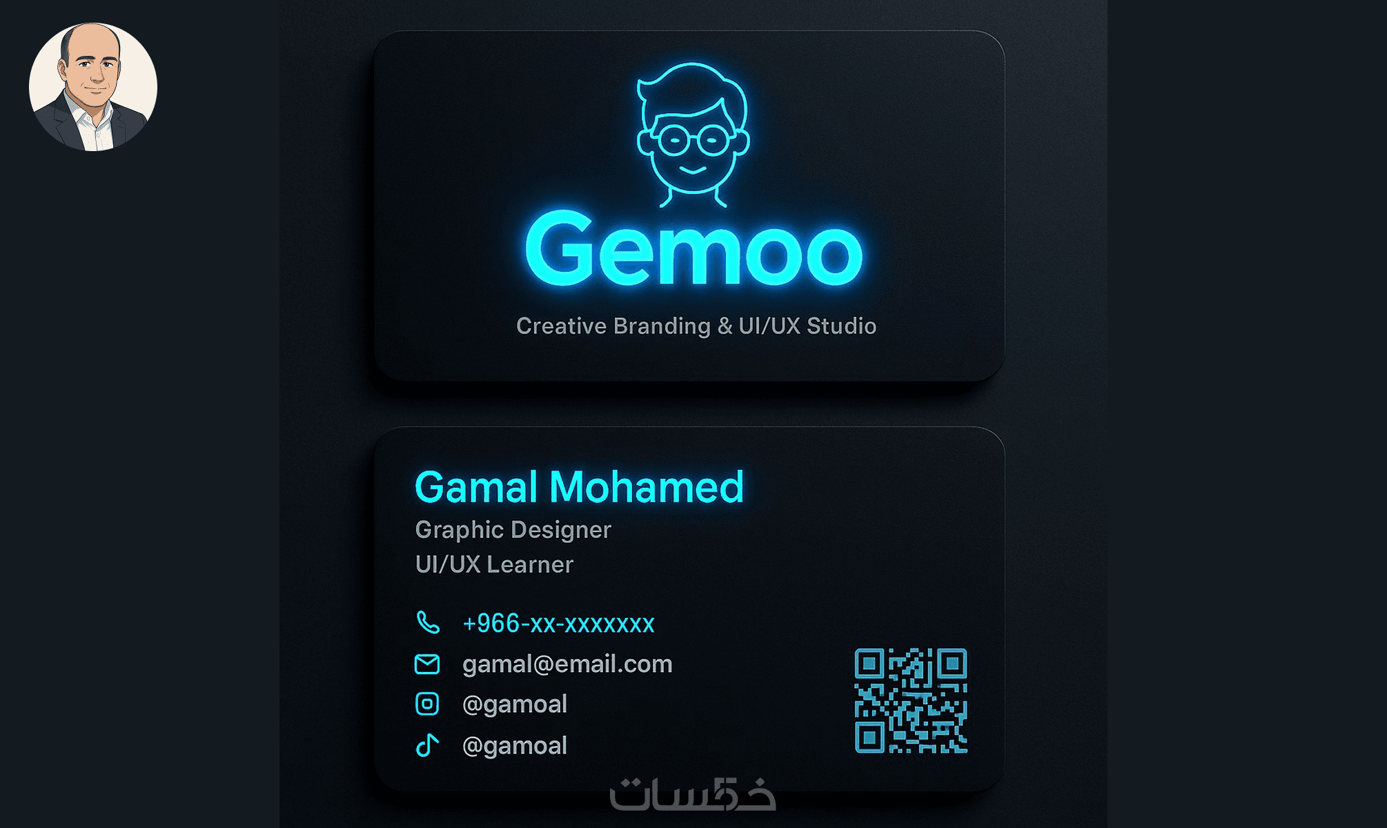 تصميم كارت عمل ذكي, business card باحترافية واضافة QR Code