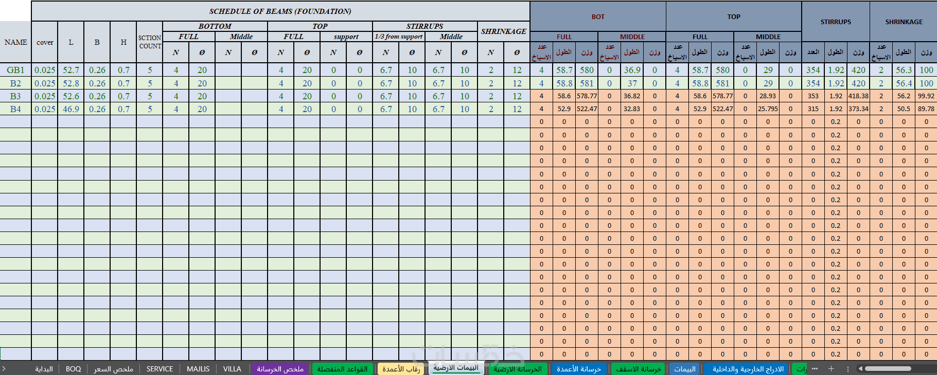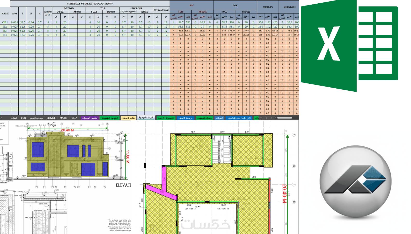حساب كميات البناء بدقة احترافية : حديد • خرسانة • طابوق