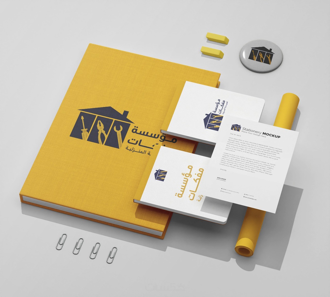 تصميم هويه تجارية ( بطاقه عمل _ ورق مراسلات _ مظروف)