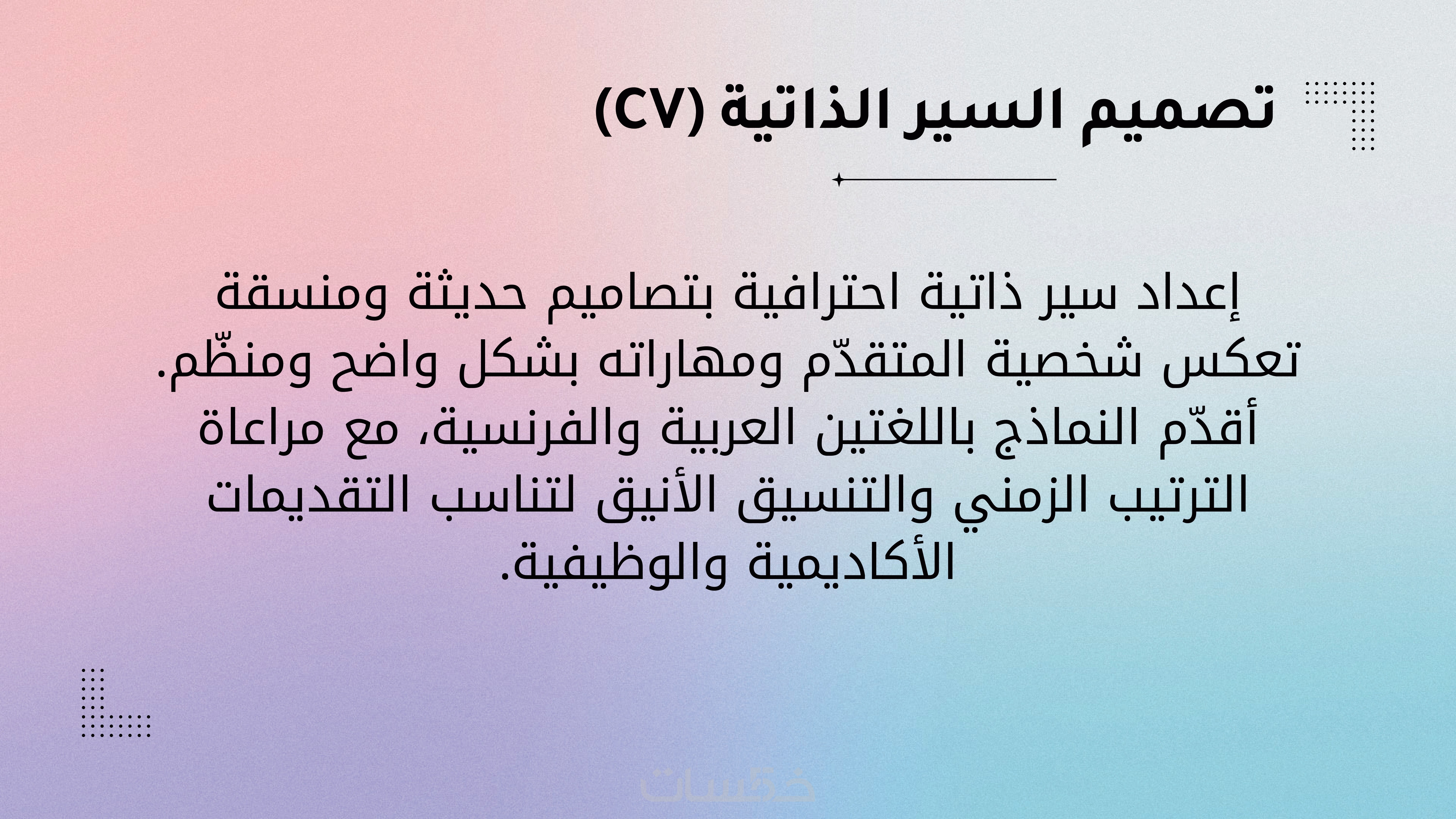 سأقوم بكتابة سيرة ذاتية (CV) احترافية وجذابة تناسب مجالك وتب