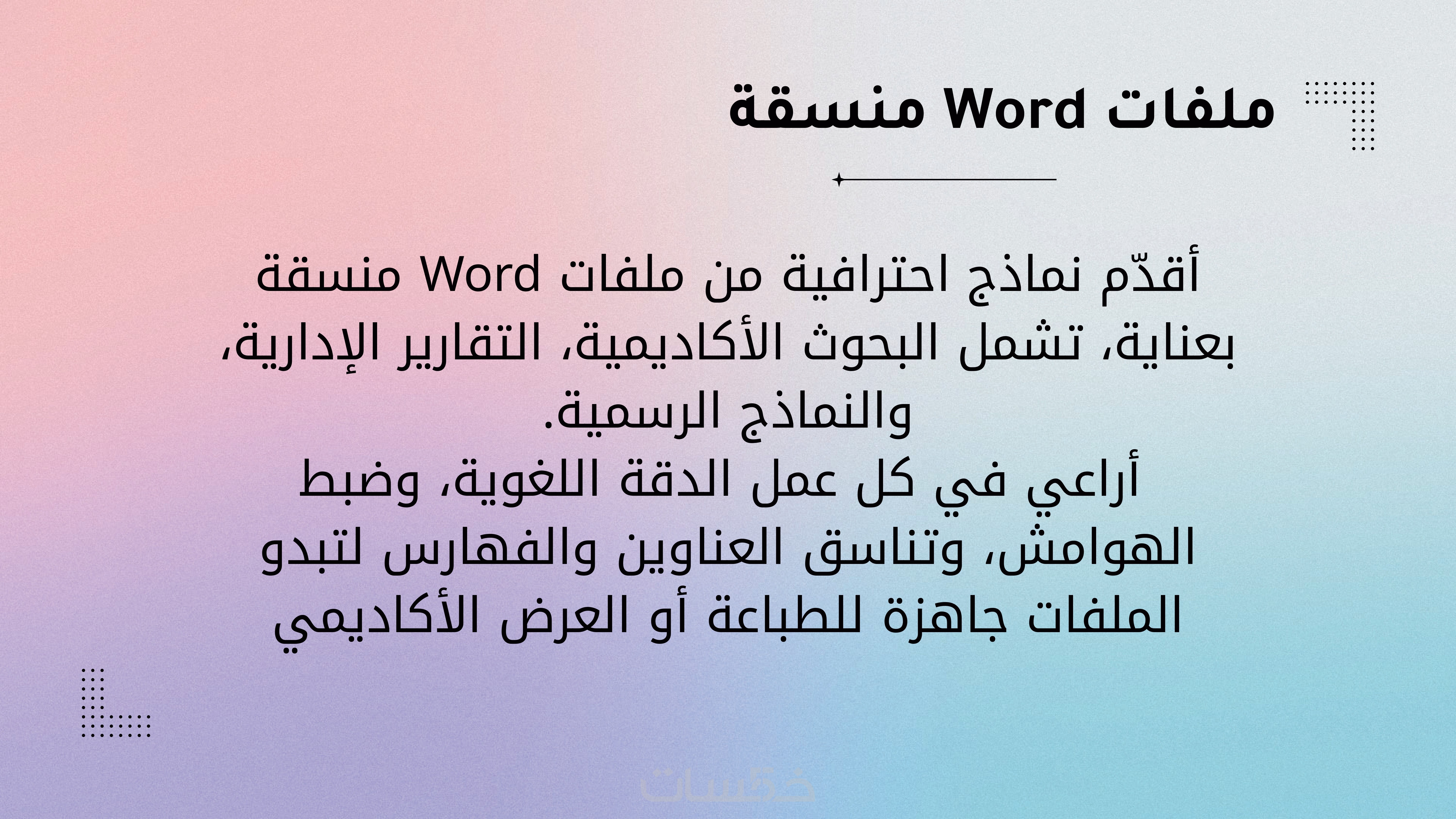 سأقوم بكتابة وتنسيق ملفات Word باحترافية وجودة عالية .