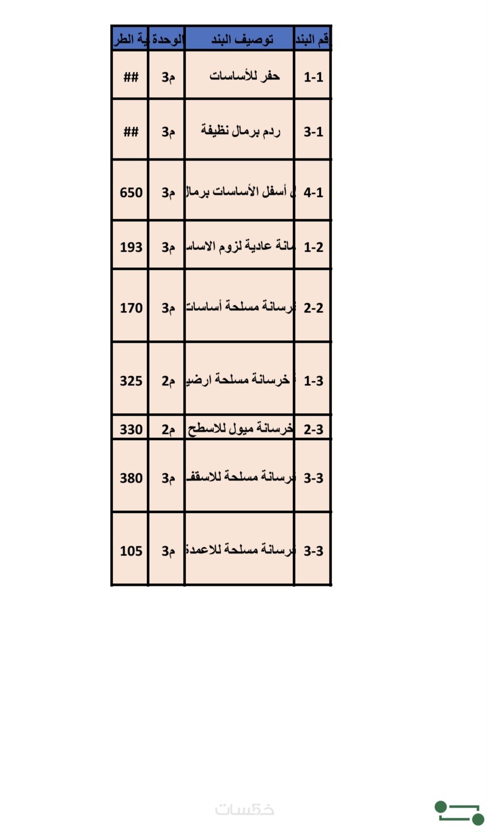 حساب سريع للكميات خرسانة او تشطيبات