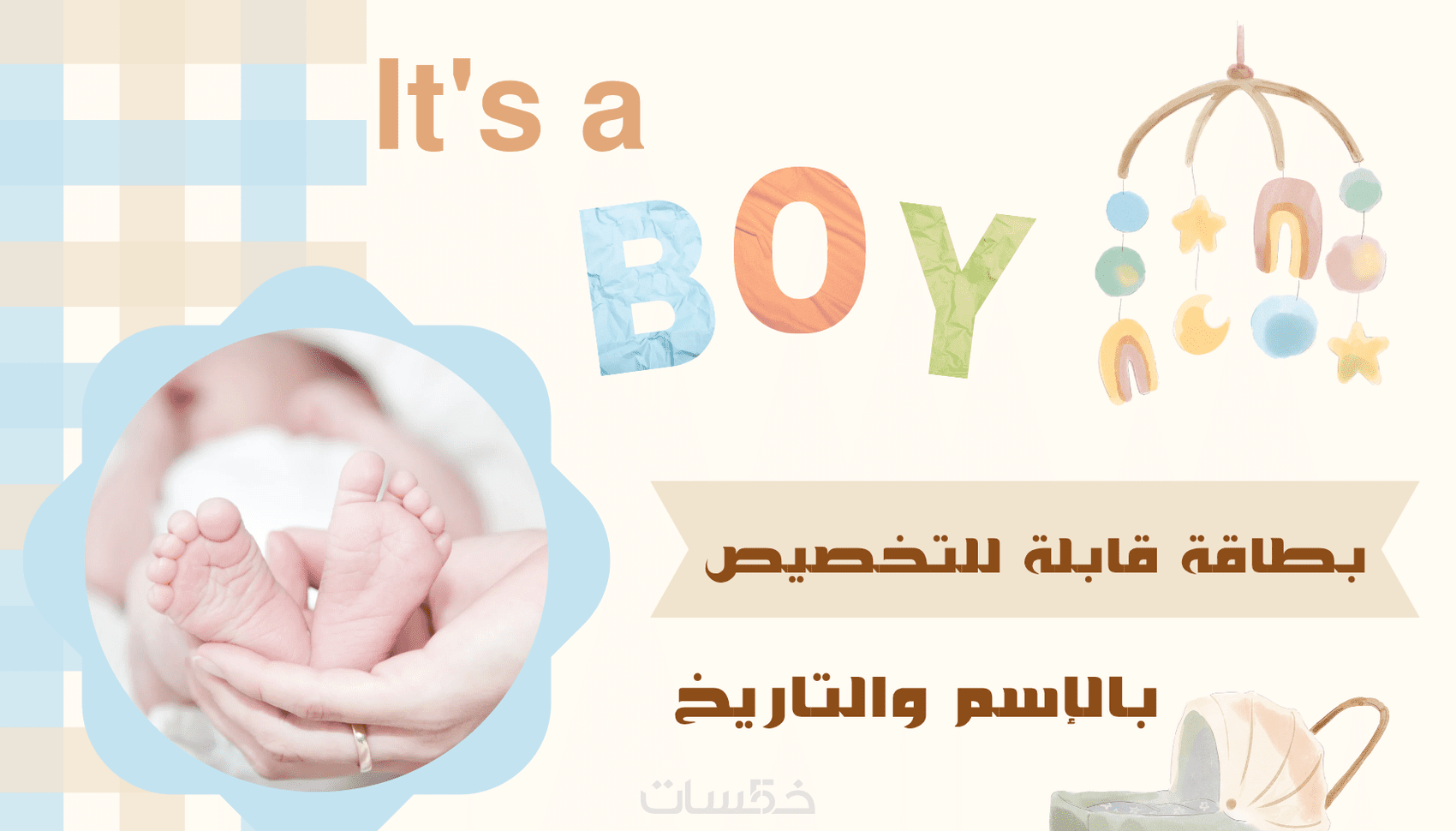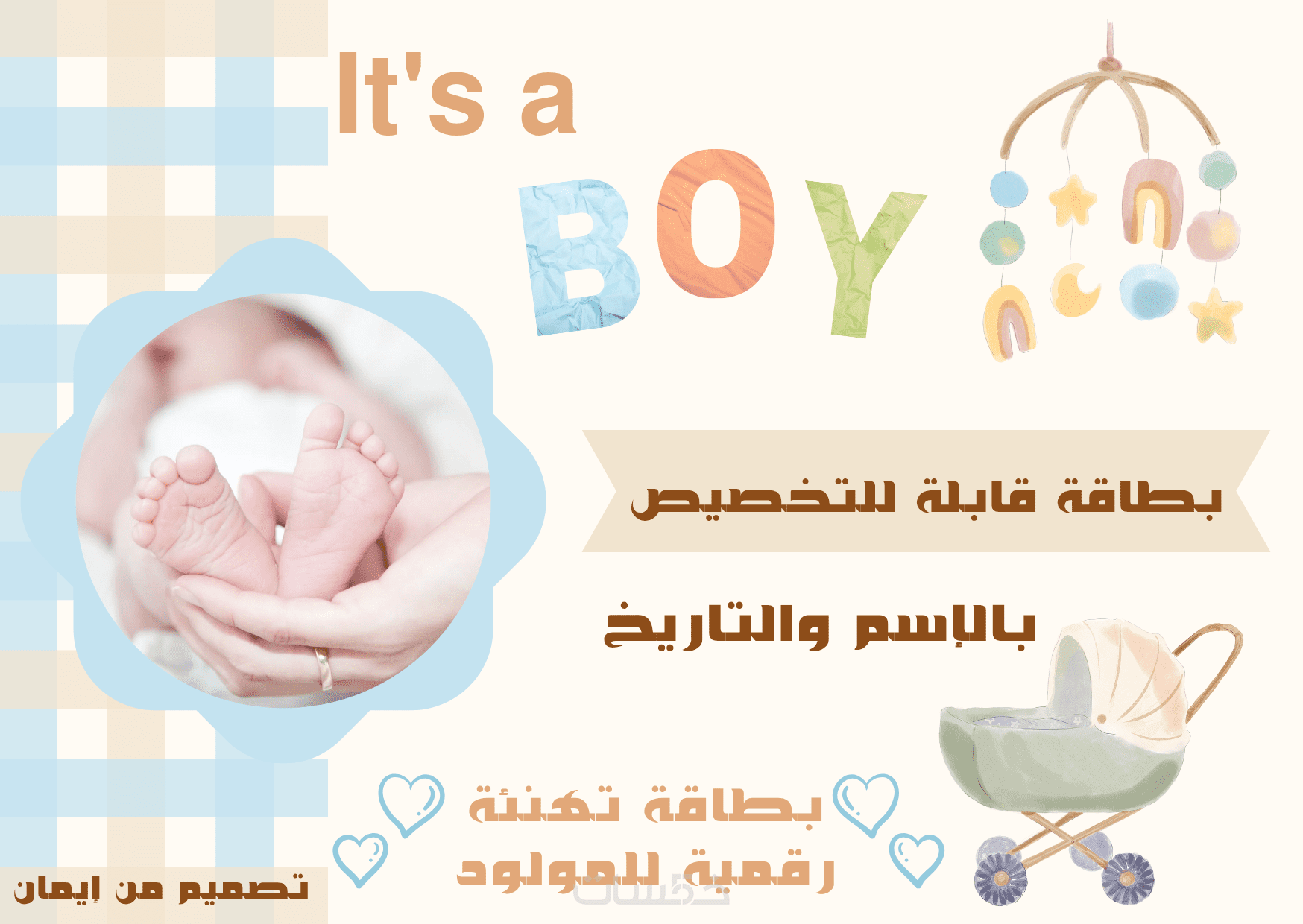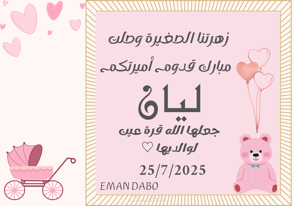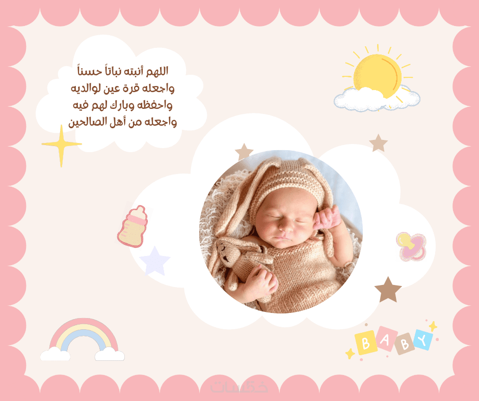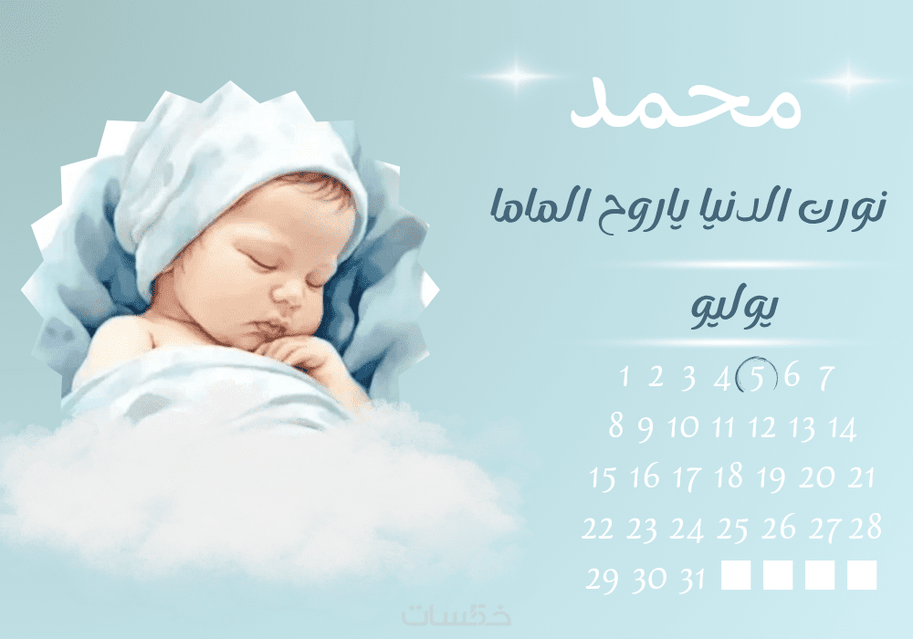 تصميم بطاقات تهنئة رقمية بمولود جديد بإسم وعبارة مميزة