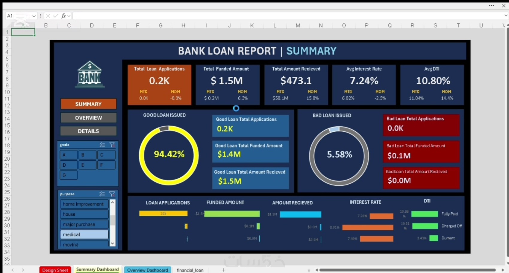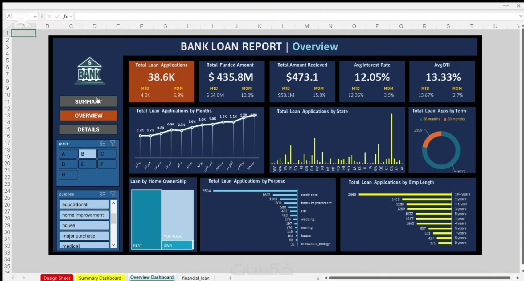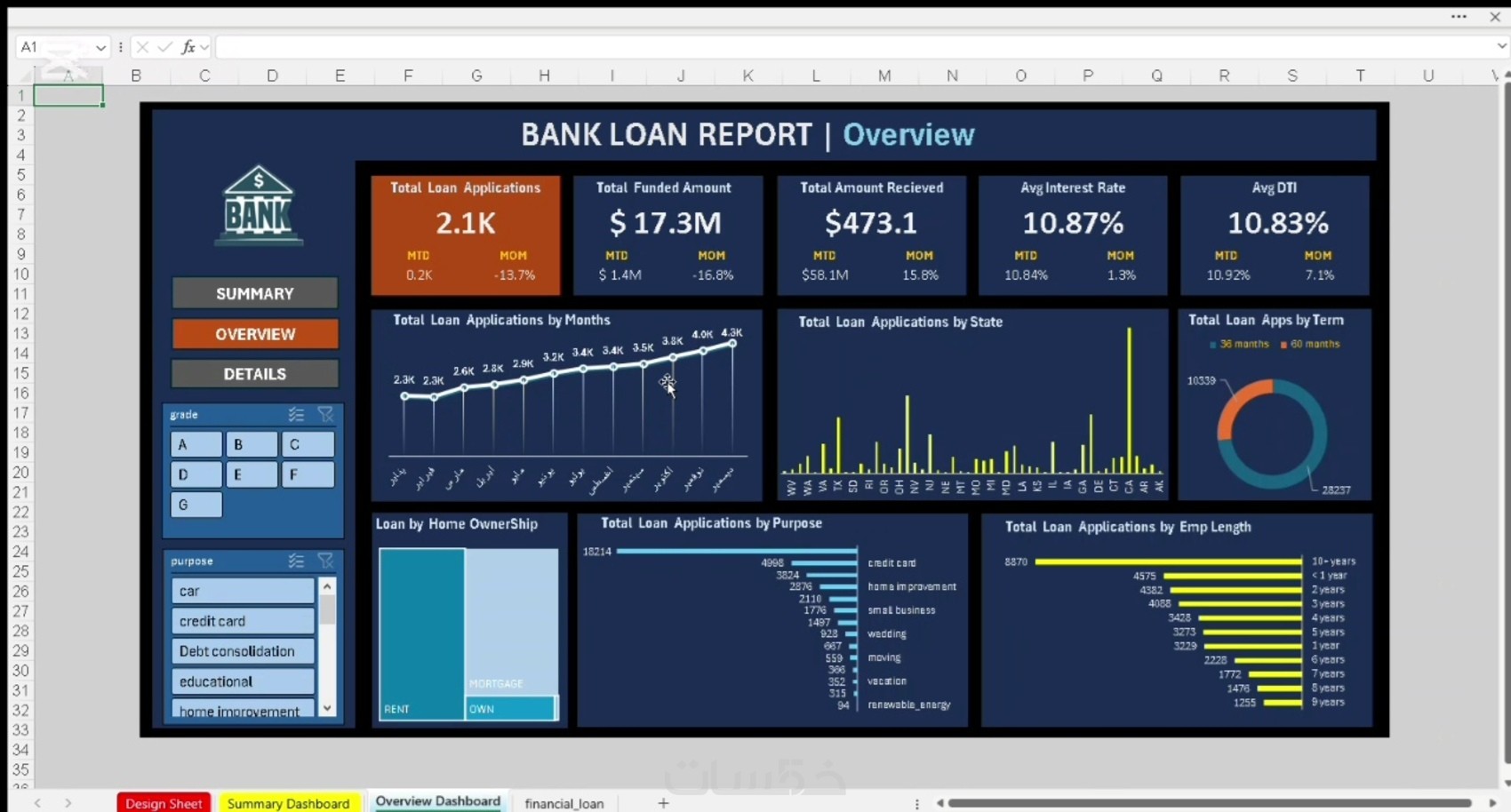 تحليل بيانات القروض البنكية باستخدام Excel ولوحات تفاعلية