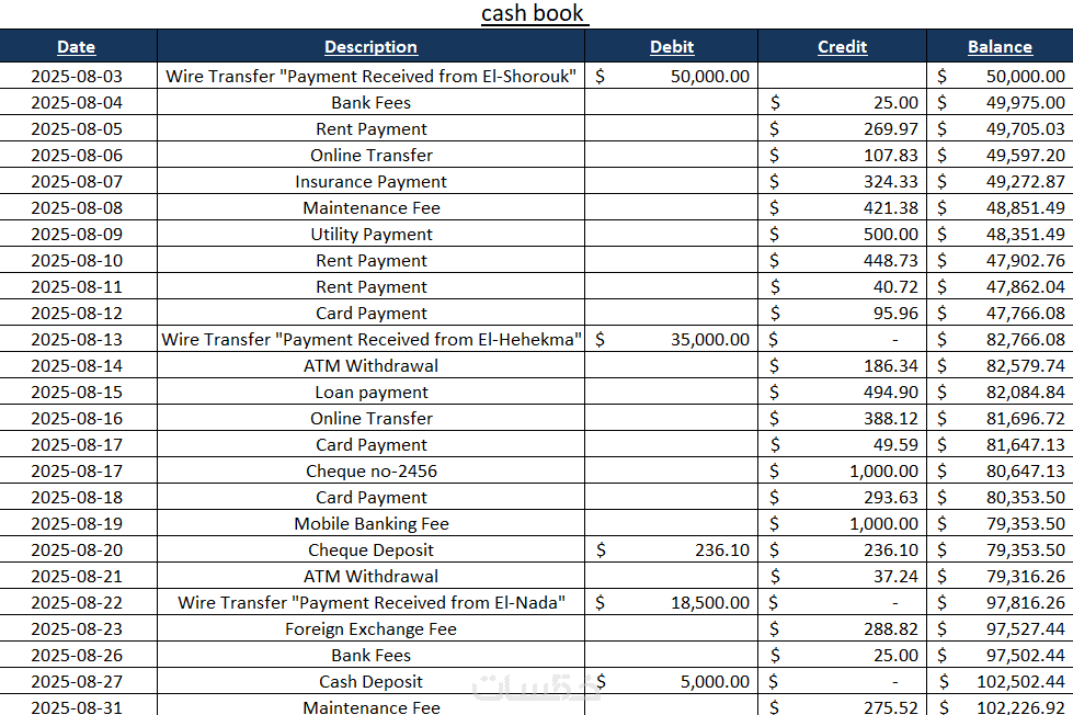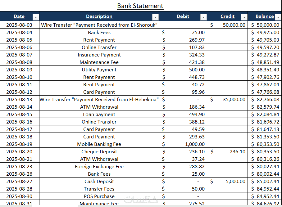 تحليل المصروفات و الفوائد البنكية باستخدام الاكسيل