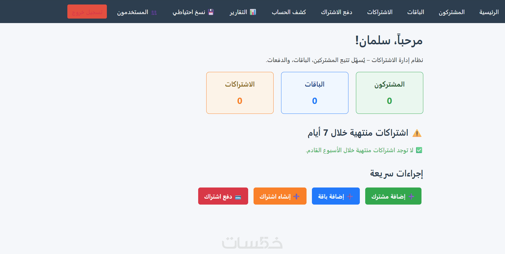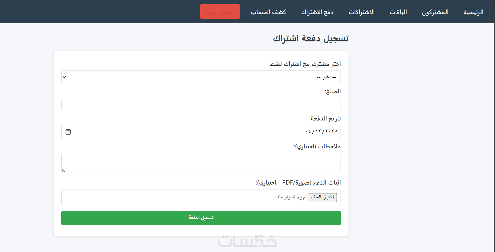برنامج متابعة الاشتراكات الشهرية والدفعات من المشتركين