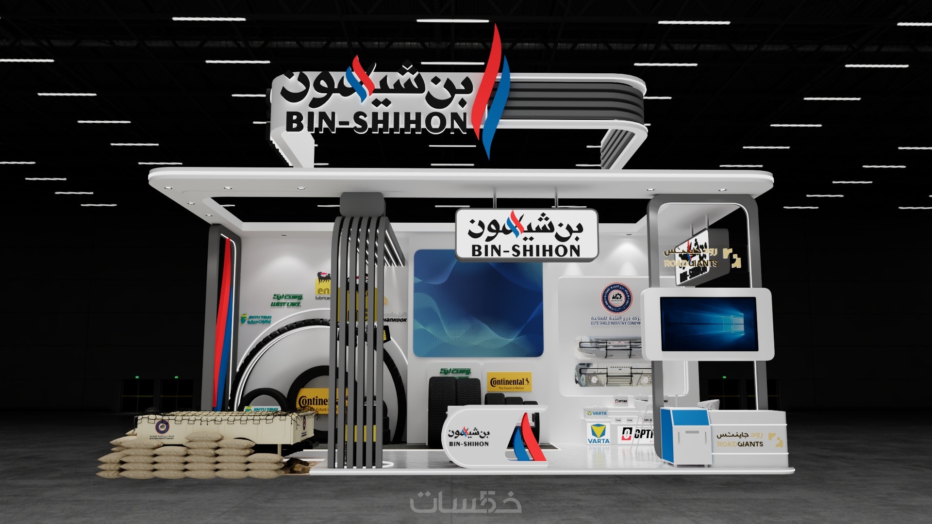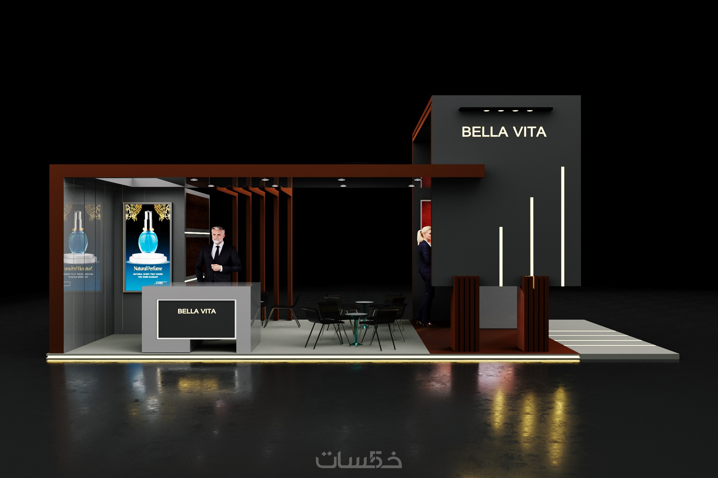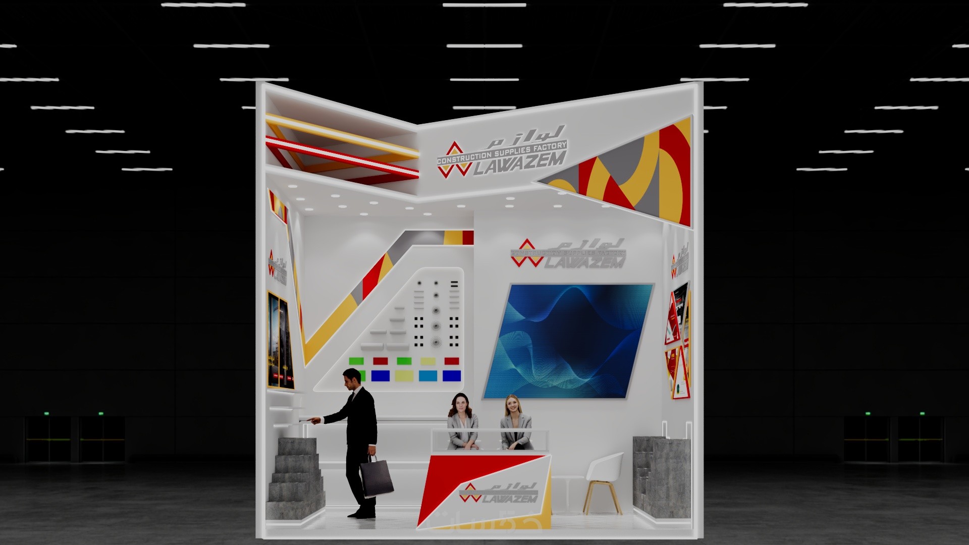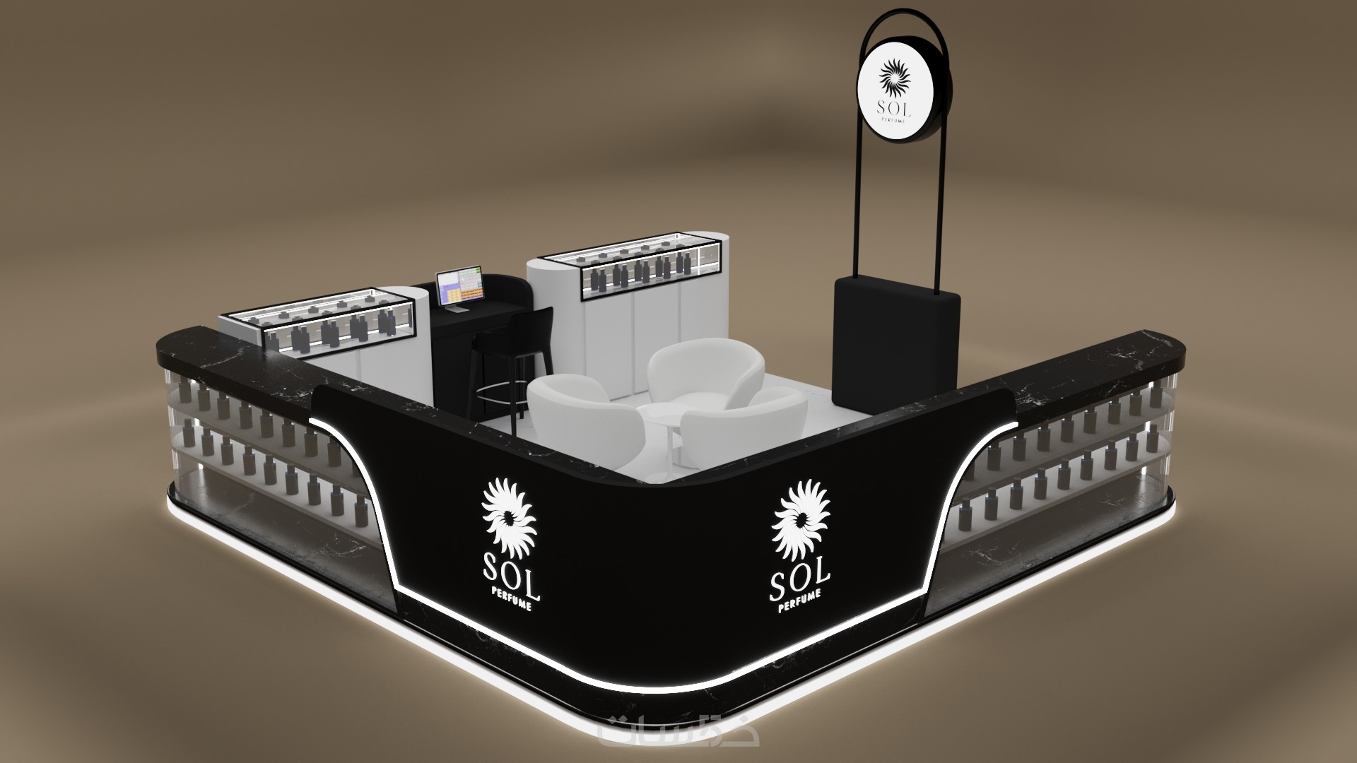 تصميم بوث كشك استاند ثلاثي الابعاد مع فيديو انيميشن