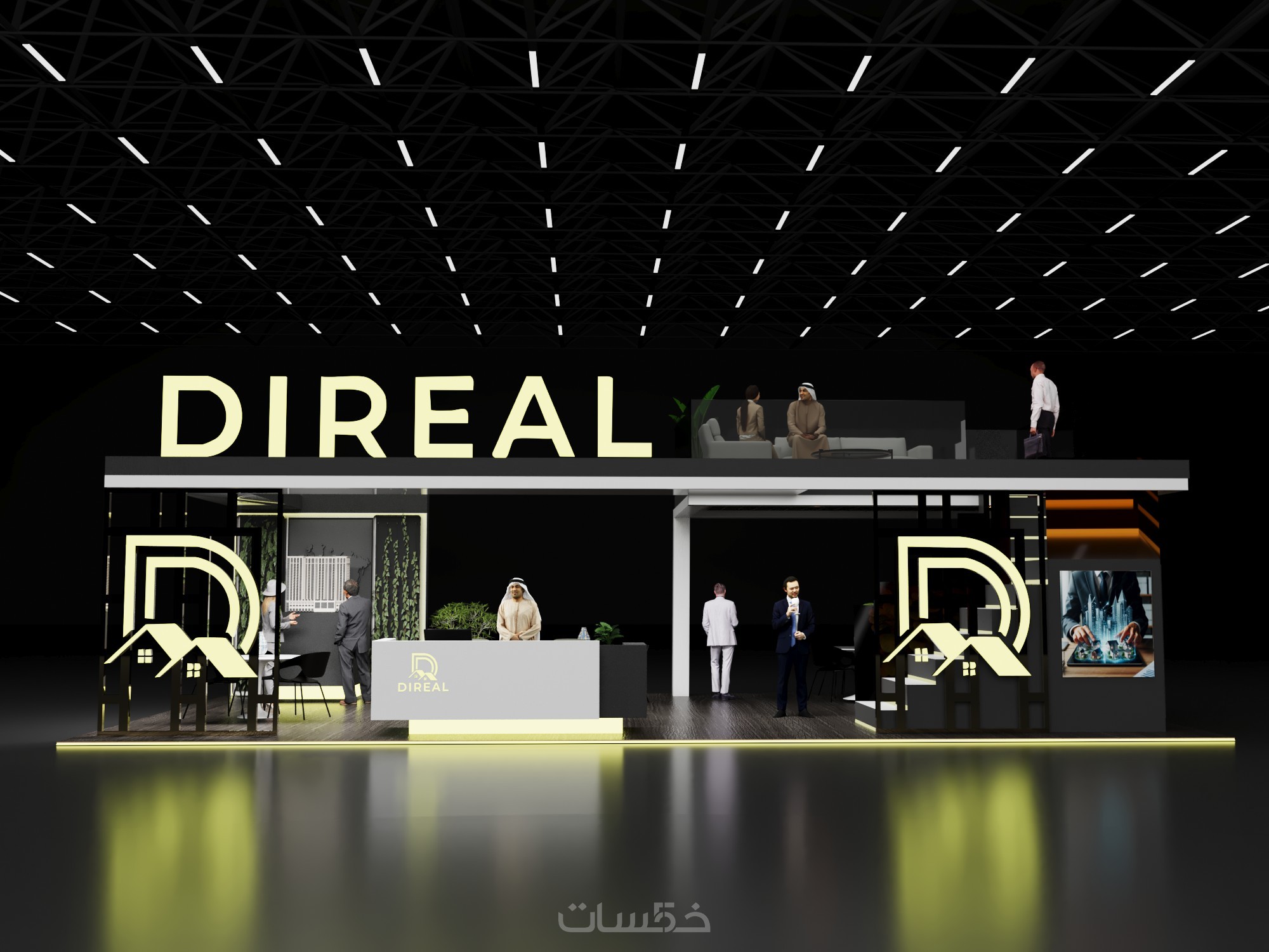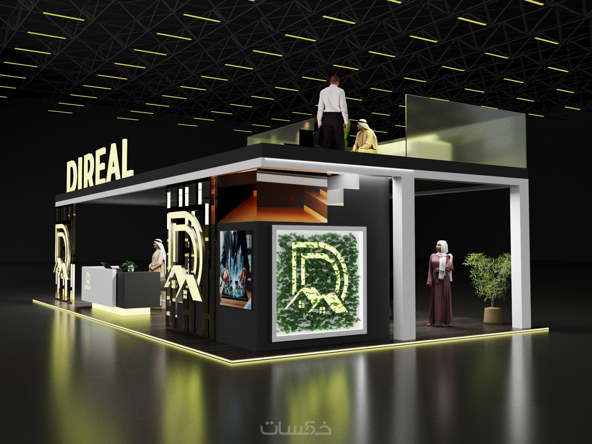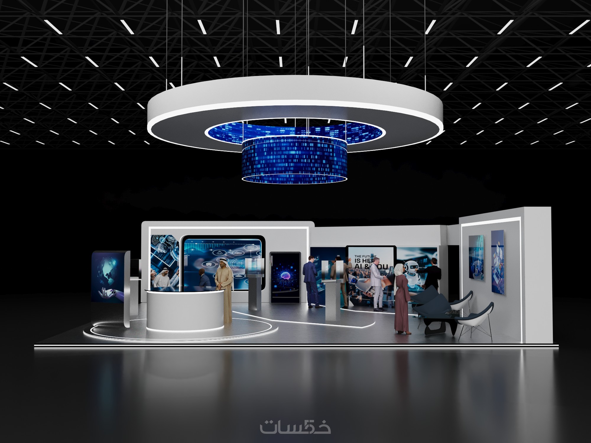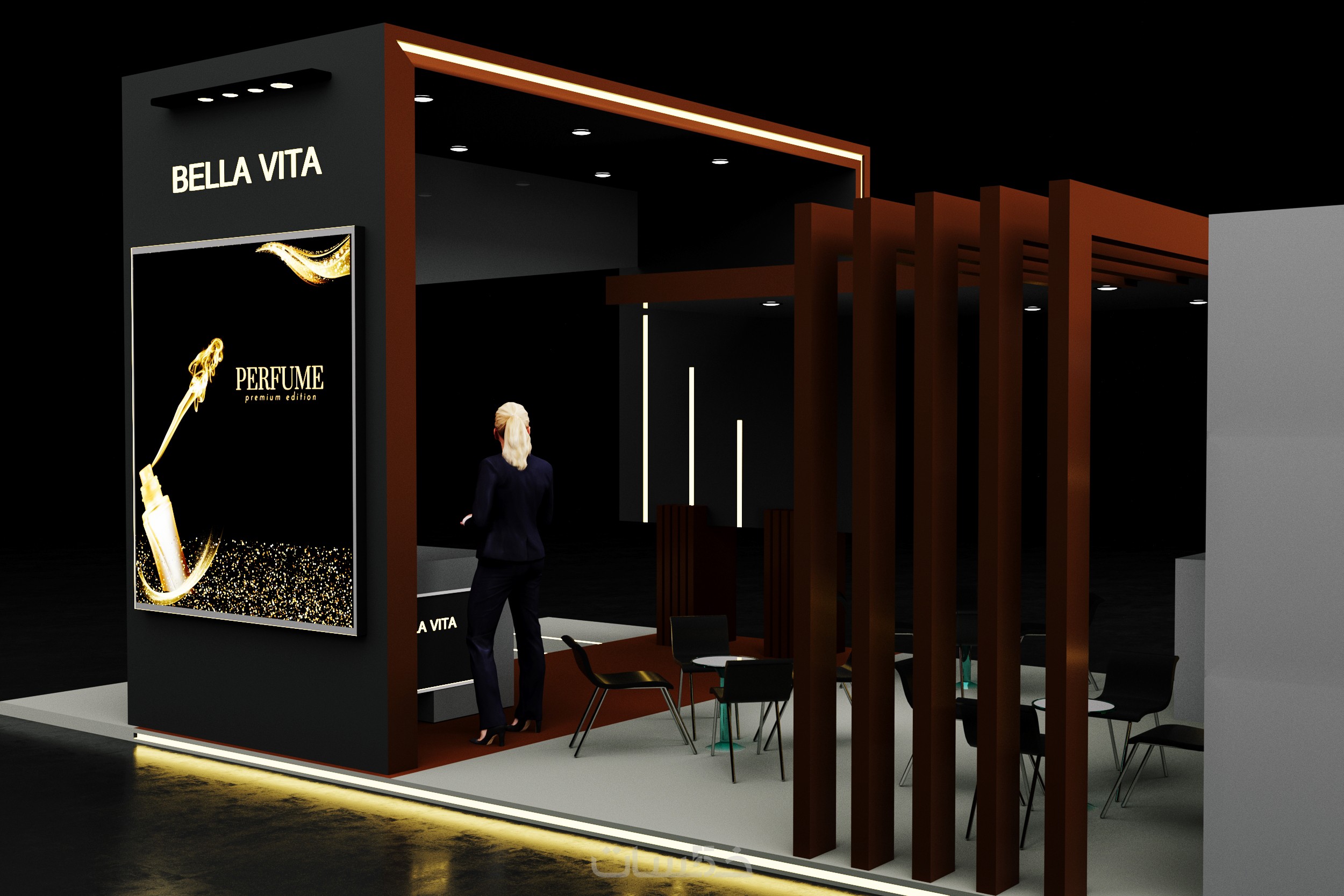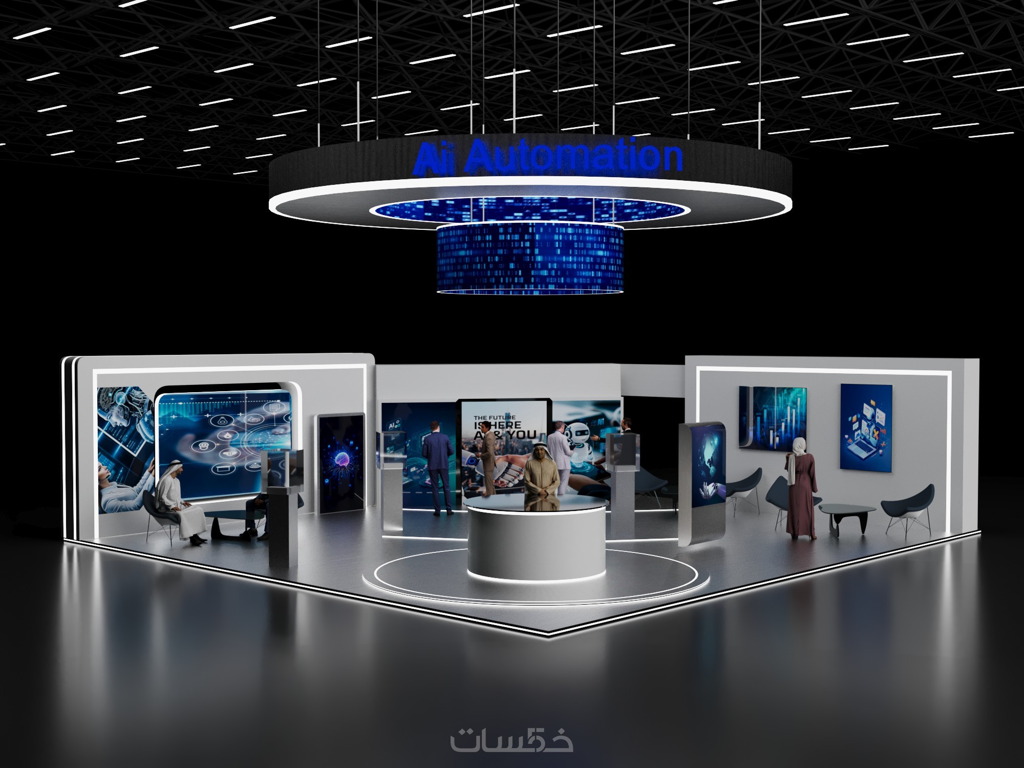 تصميم بوث كشك استاند ثلاثي الابعاد مع فيديو انيميشن