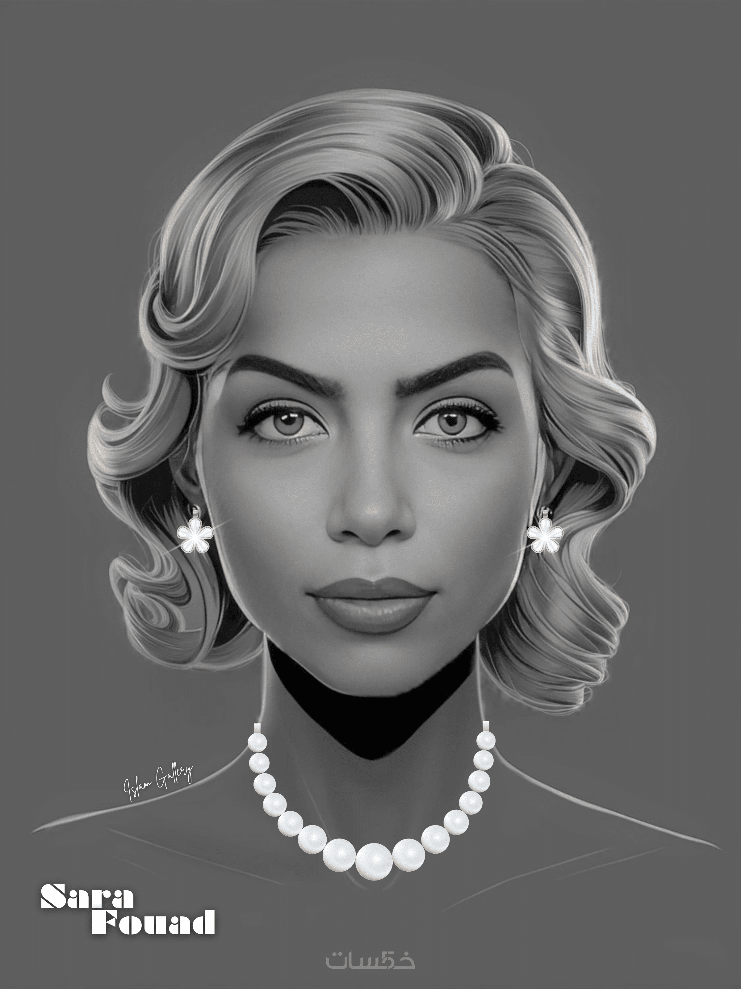 رسم بورتريه ديجيتال ابيض واسود مطابق للرسم باليد
