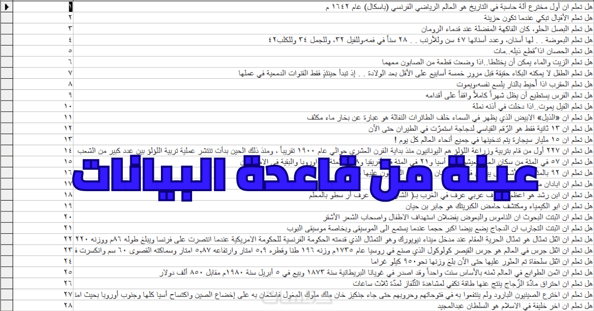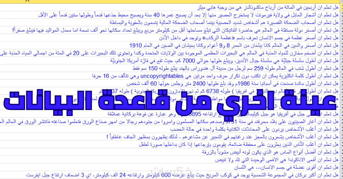 سوف ابيع لك قاعدة بيانات هل تعلم 1500 معلومه مفيدة منوعه