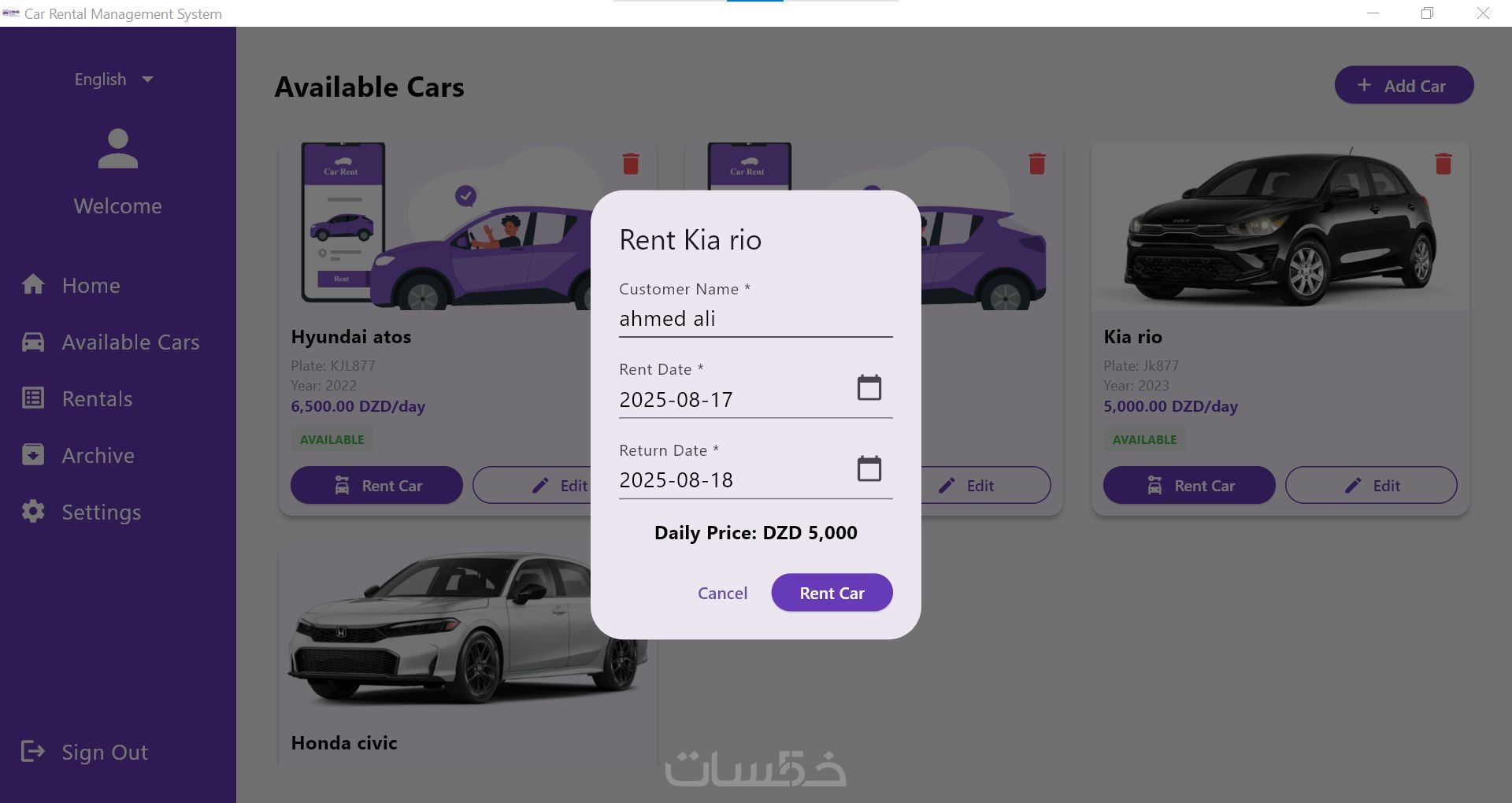نظام إدارة كراء السيارات (CRMS) جاهز ومؤمن بالكامل