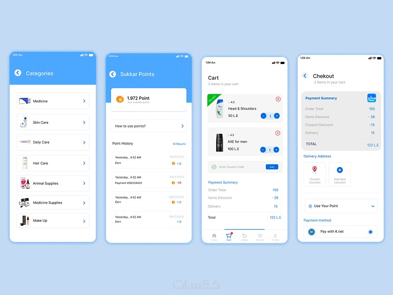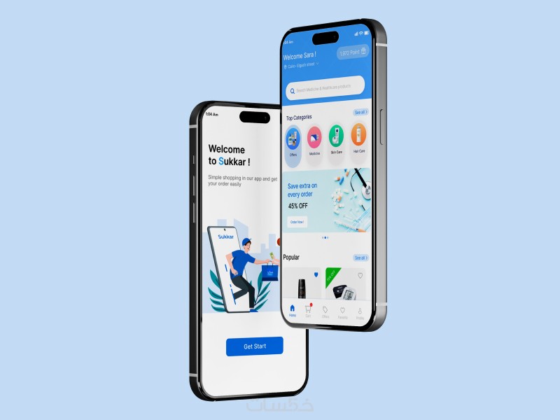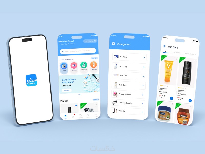 تصميم تطبيق صيدلية مع أقسام للمنتجات الطبية والتجميلية