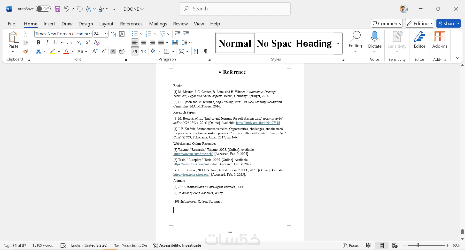 تنسيق كتب ومشاريع التخرج word