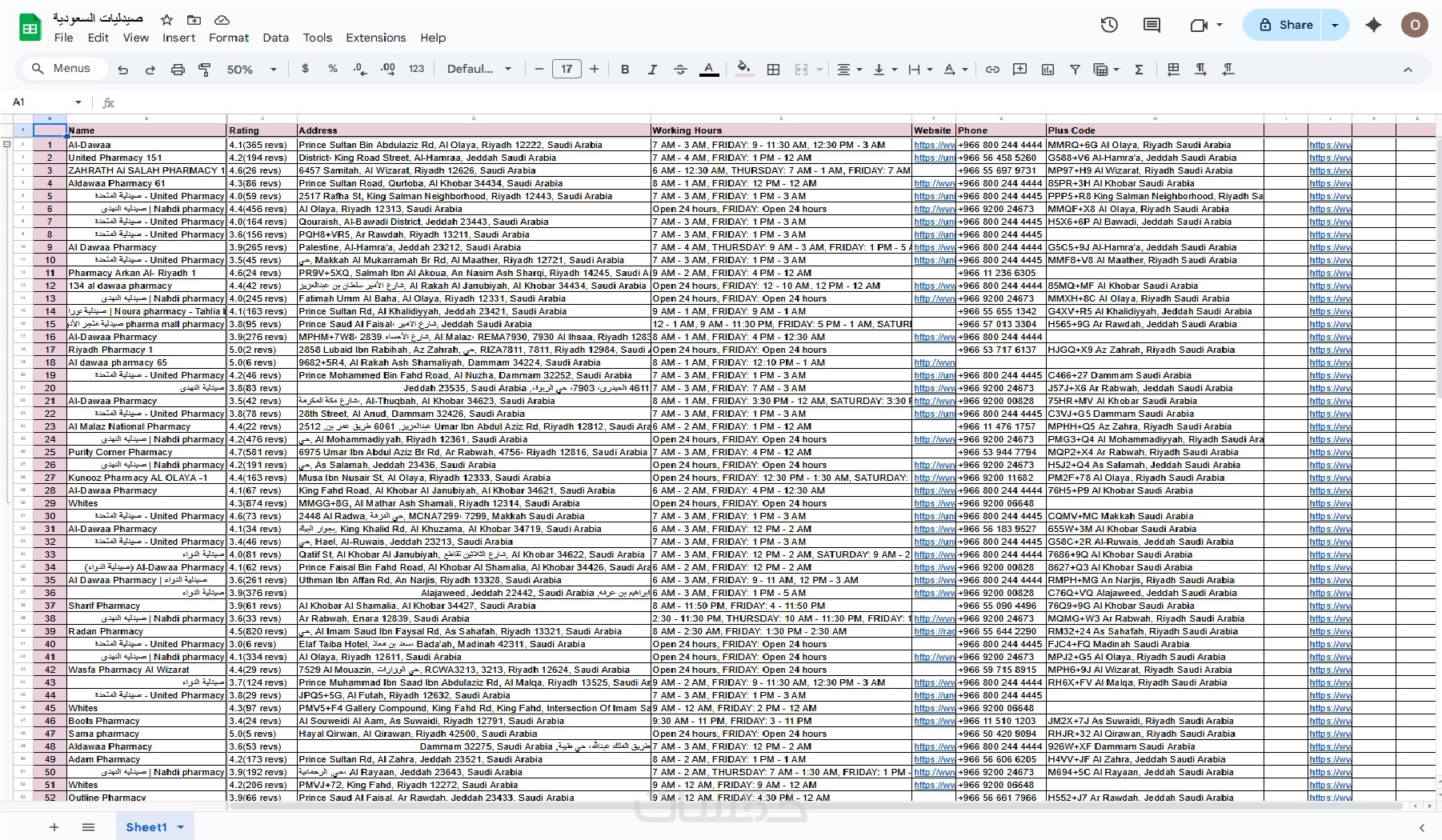 قوائم جاهزة مستخرجة من جوجل مابس بتاريخ حديث