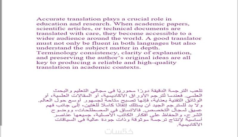 ترجمة احترافية دقيقة بين العربية والإنجليزية والفرنسية