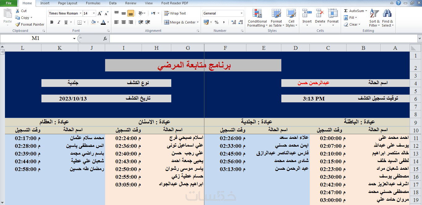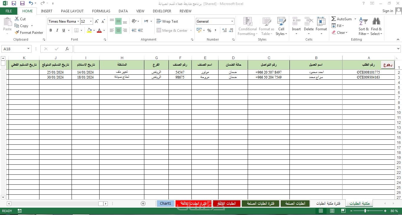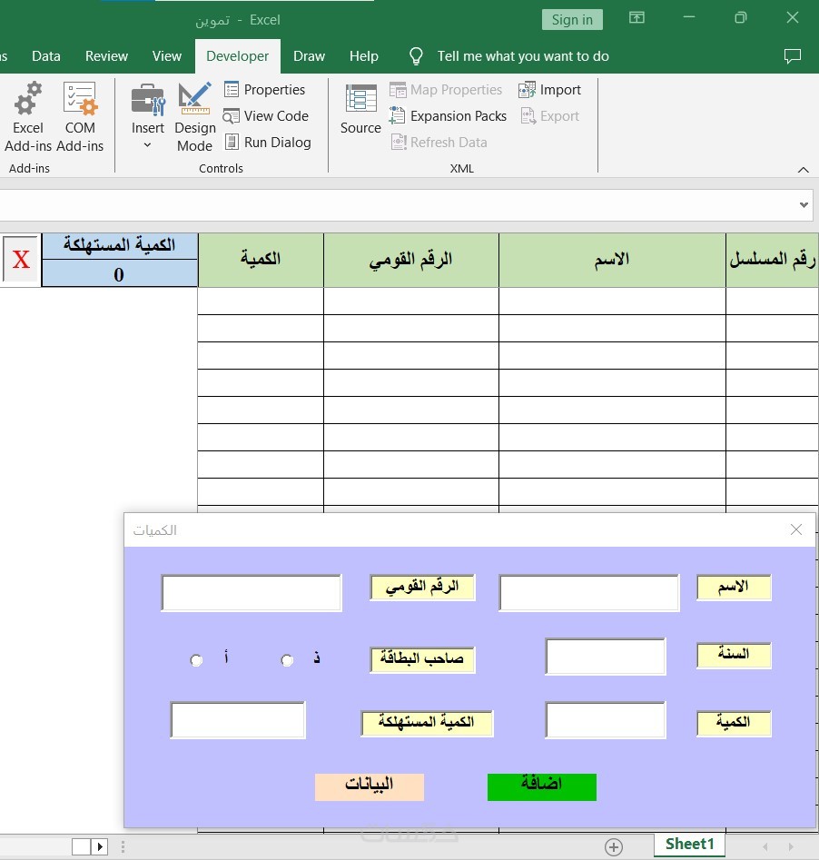 ملف اكسل بواجهة مستخدم لإدارة البيانات