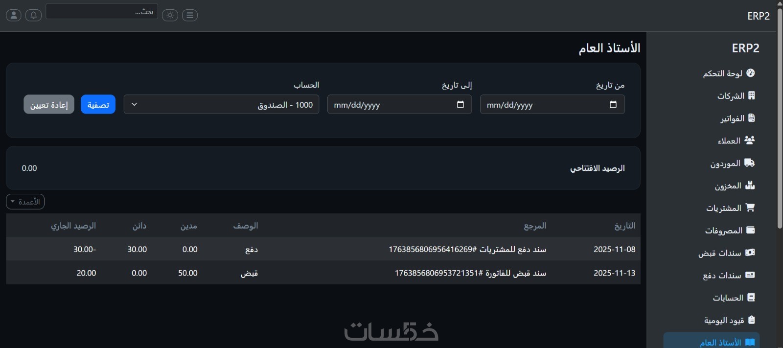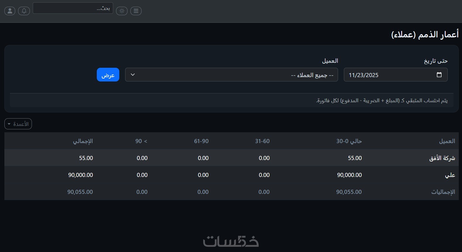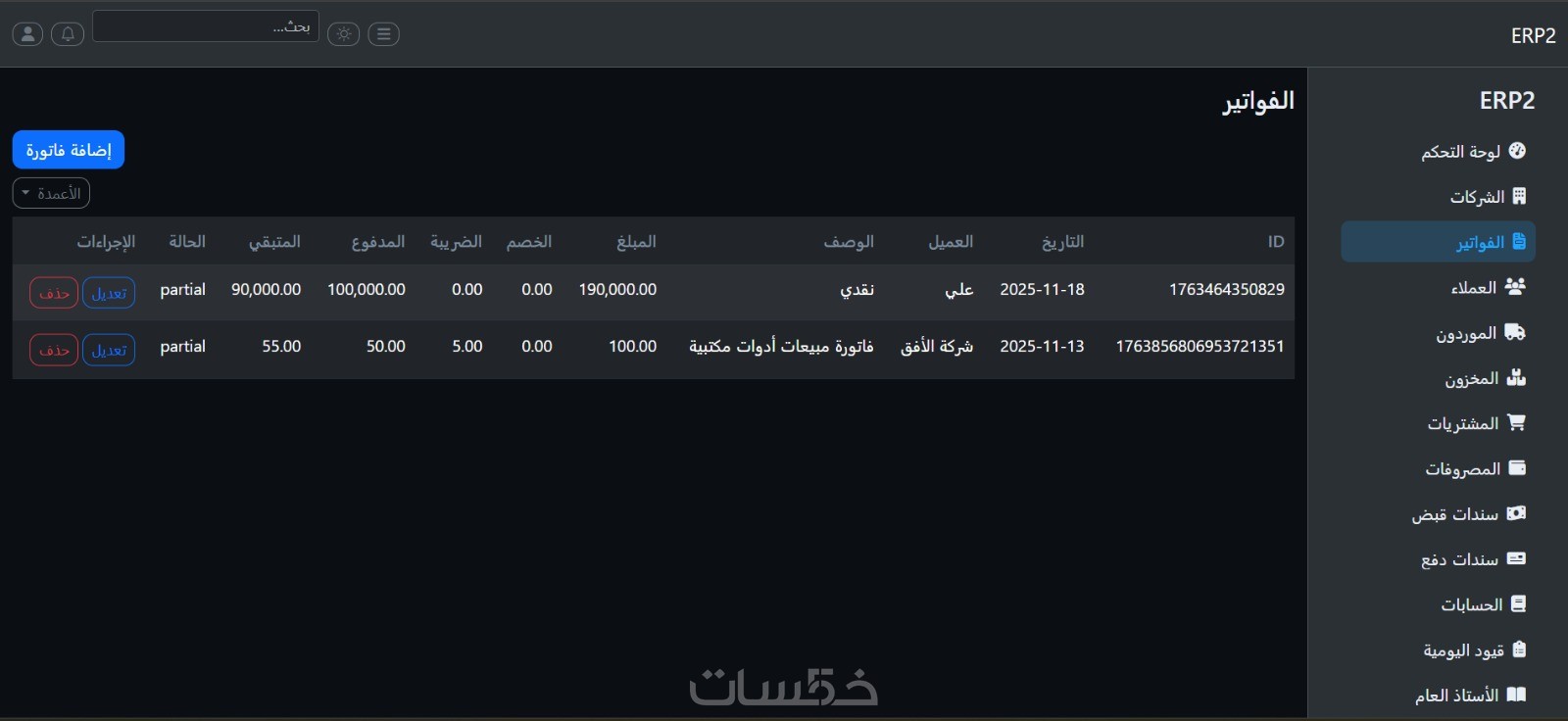 تفريغ بيانات الفواتير الي Excel او ERP System
