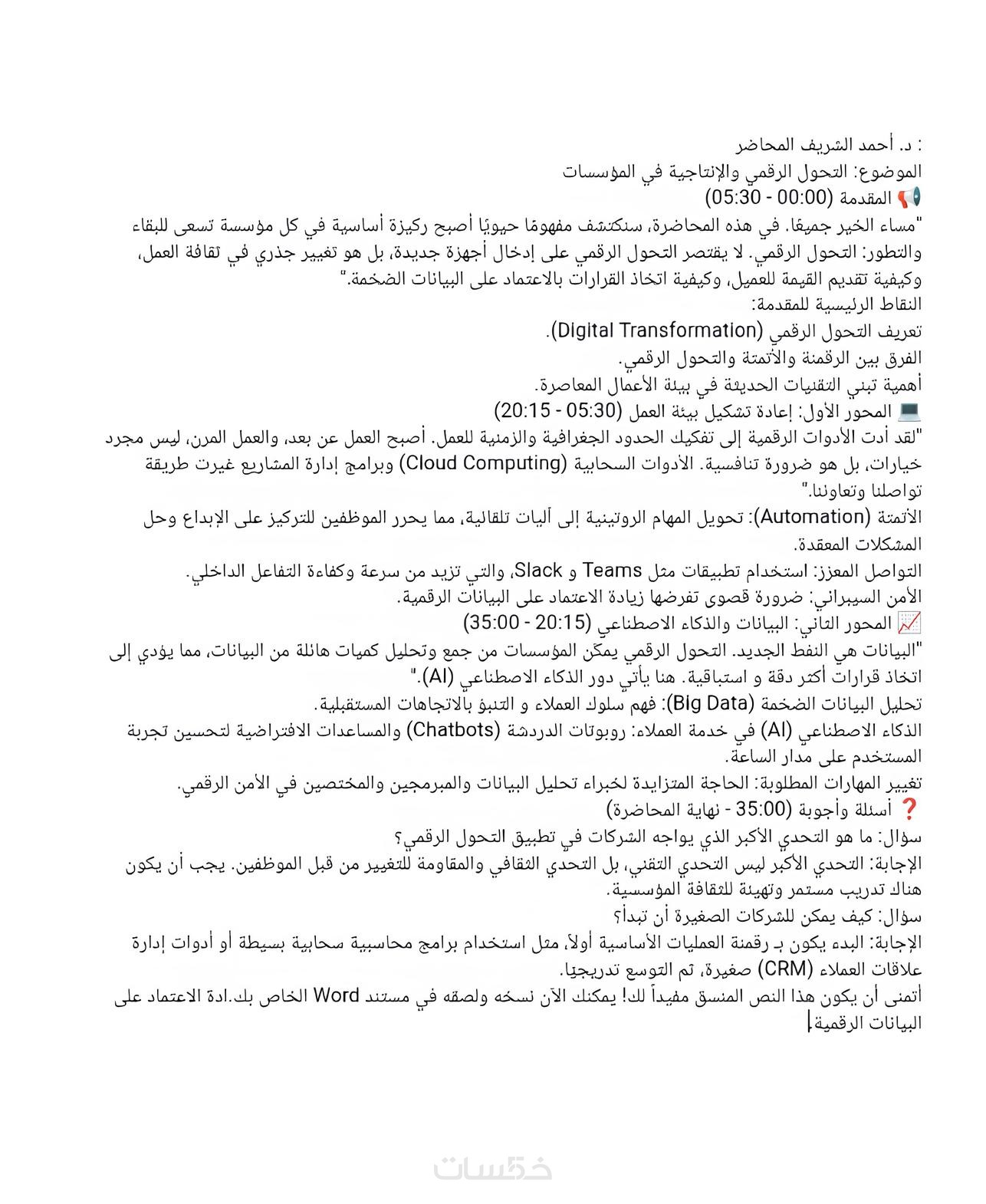 سأقوم بتفريغ دقيق من التسجيلات الصوتية أو الفيديو
