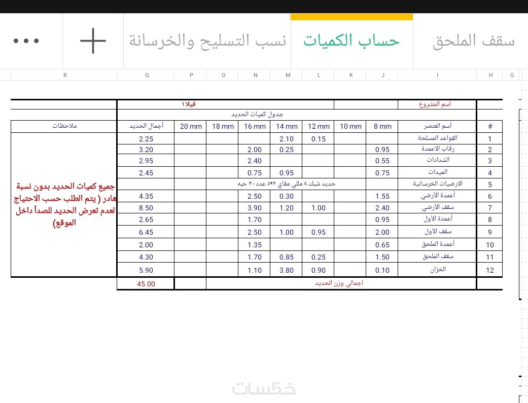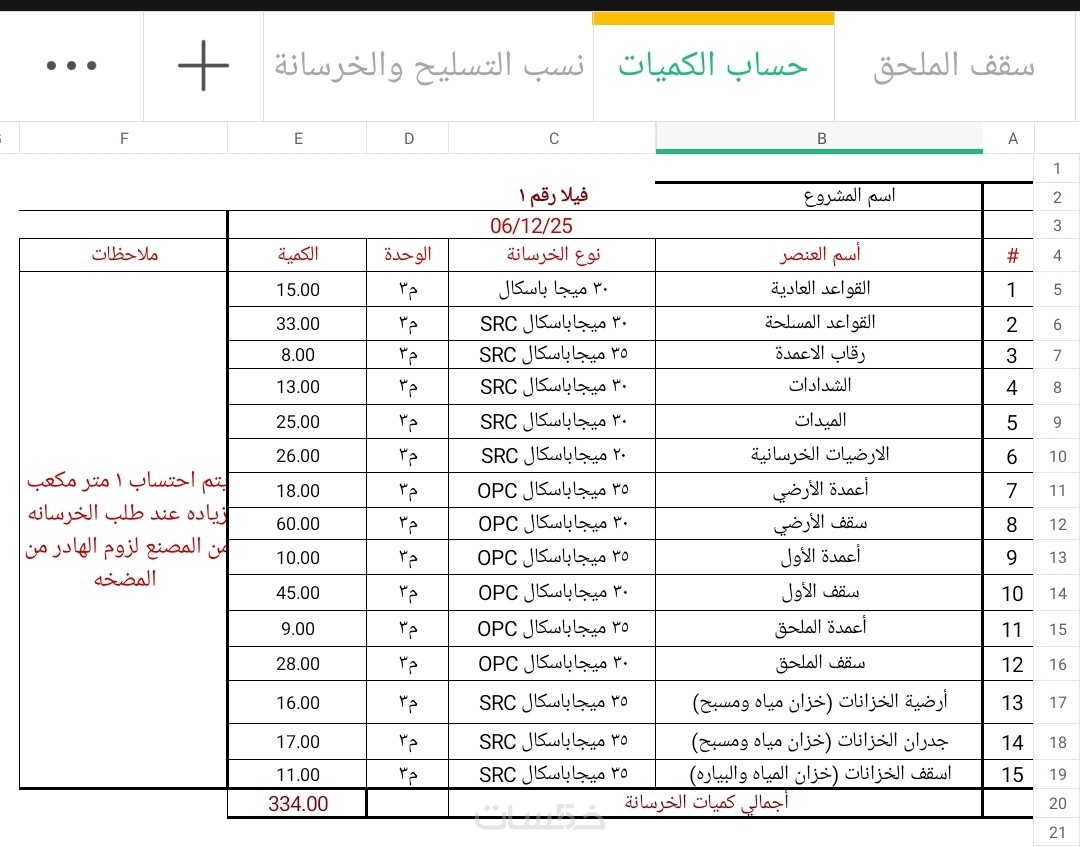 حساب كميات دقيقة وتفصيلية للمشاريع والمباني السكنية والفلل