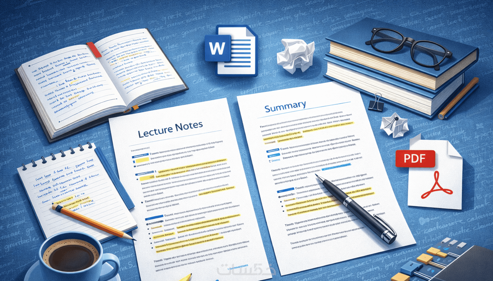 كتابة المذكرات والملخصات بدقة عالية على Word وتسليمها PDF