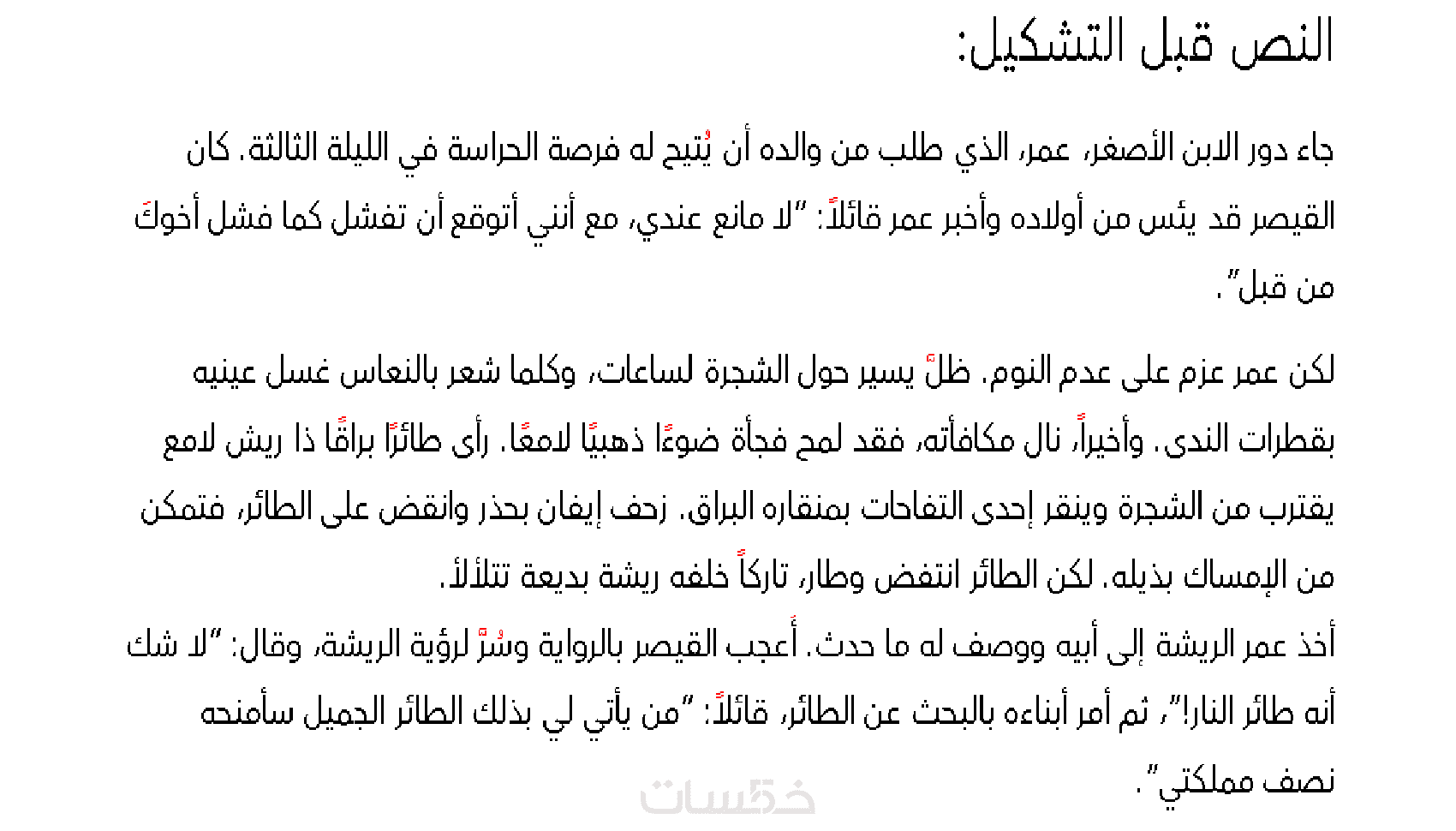 تشكيل كامل بحسب قواعد النحو والصرف