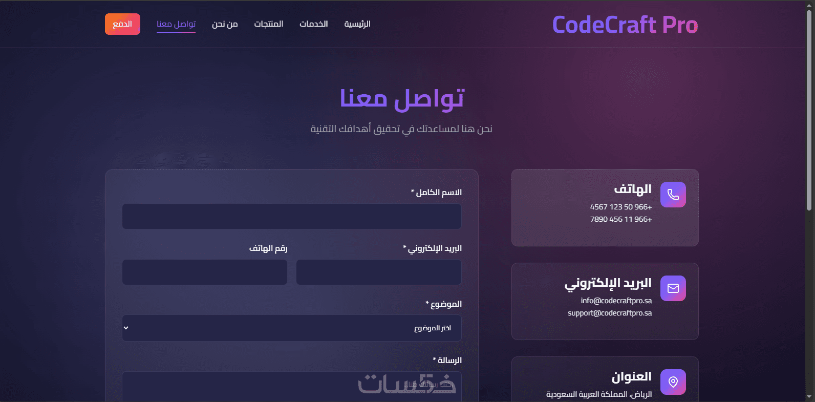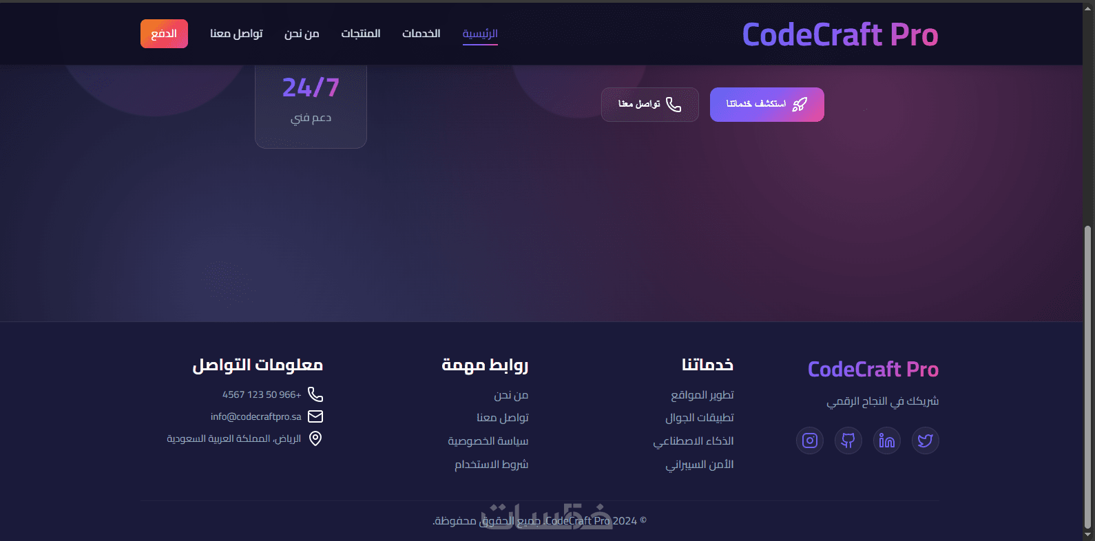 تصميم وتطوير مواقع احترافية Code Craft Pro HTML/CSS/JS)
