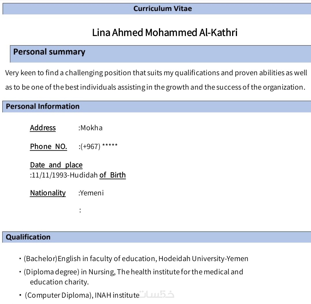 سأكتب سيرتك الذاتية باللغة الإنجليزية أو العربية باحترافية