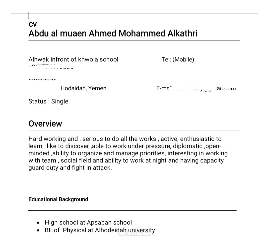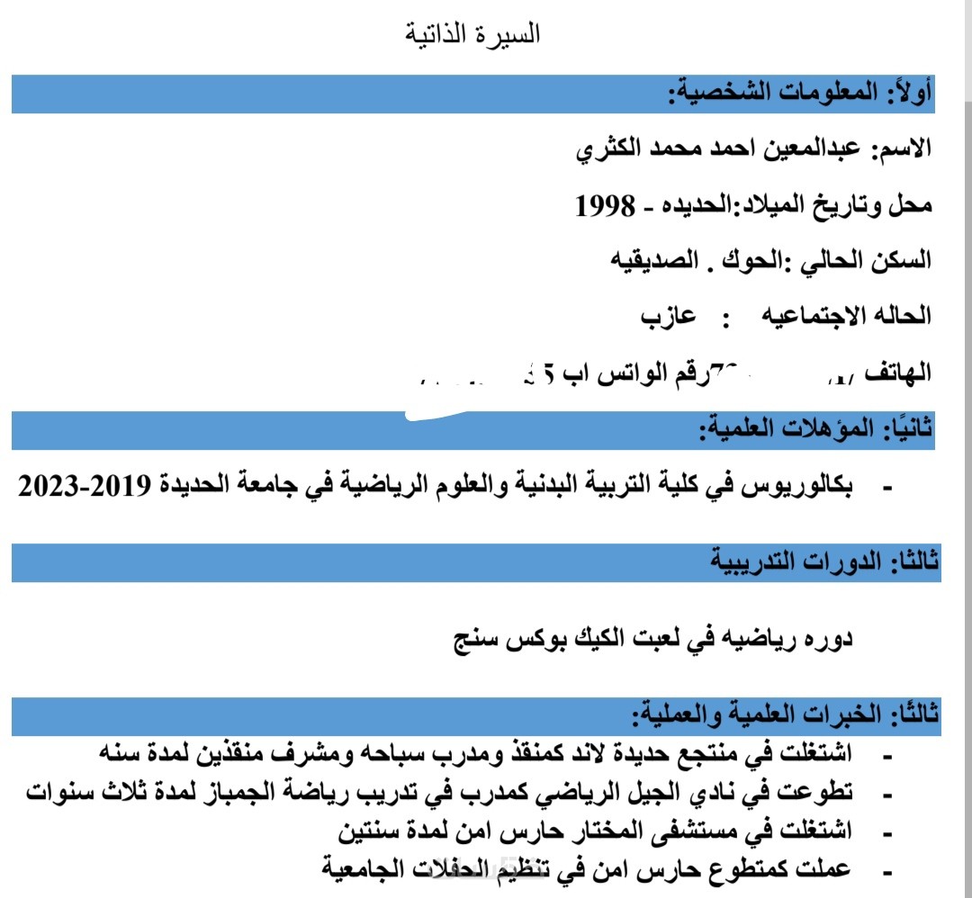 كتابة سيرتك الذاتية بإحدى اللغتين العربية والإنجليزية