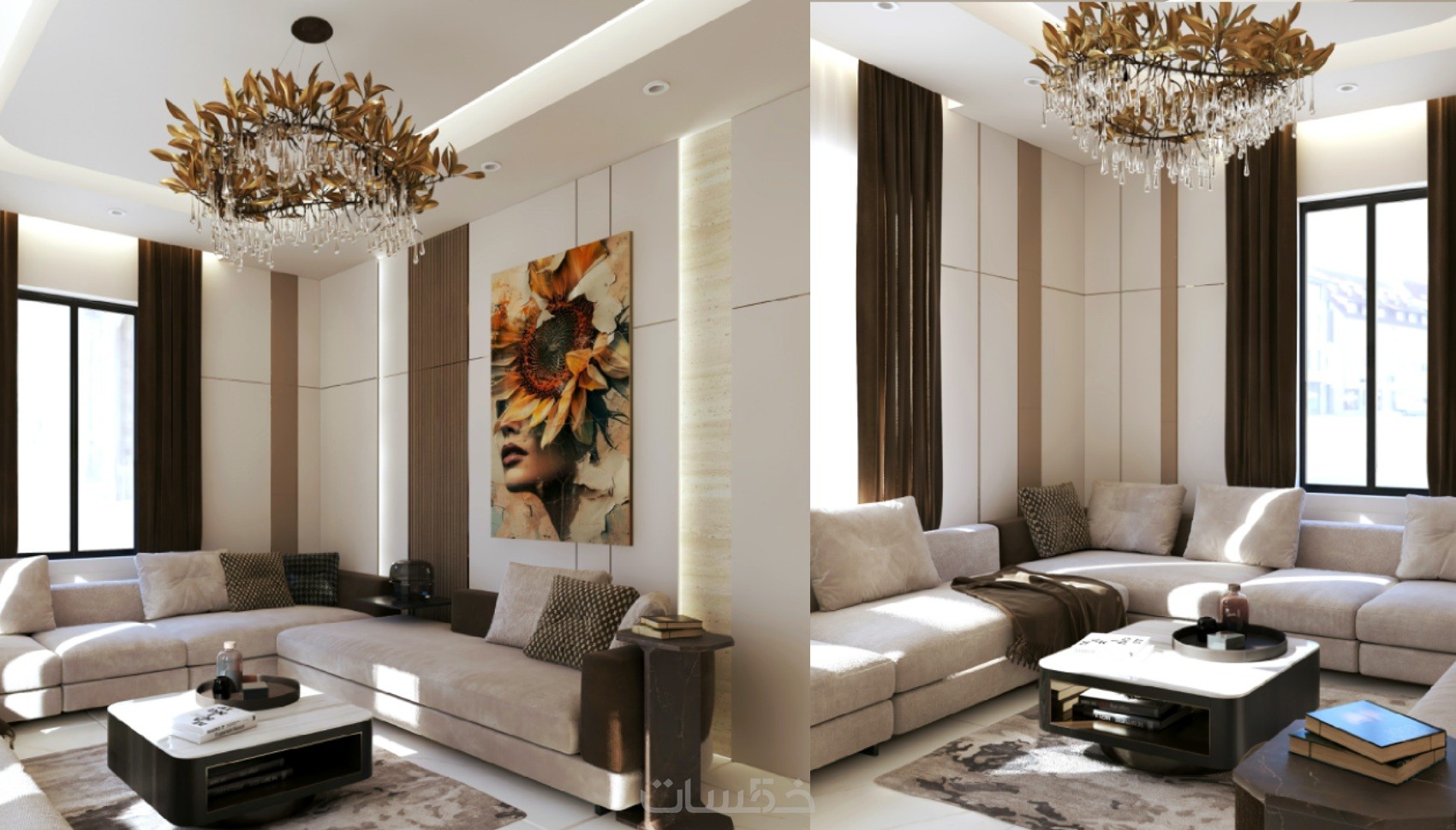 تصميم داخلي وديكور لجدار شاشة التلفاز