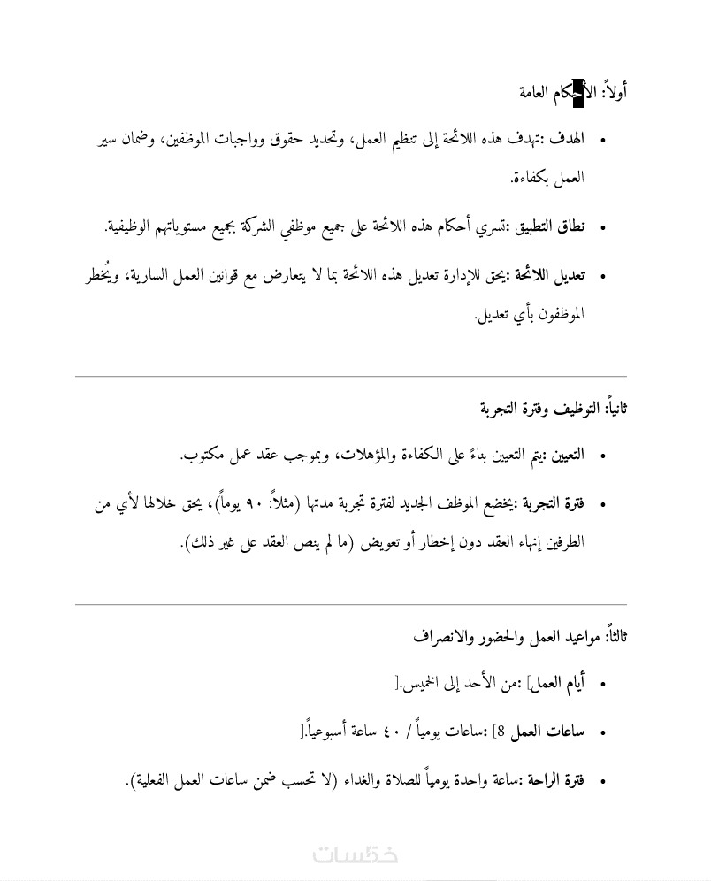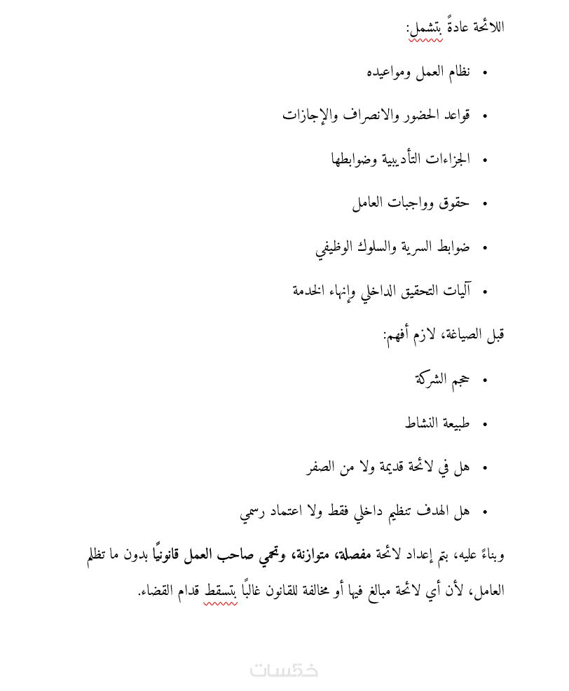 صياغه اللوائح الداخلية للعمل داخل الشركات والمؤسسات